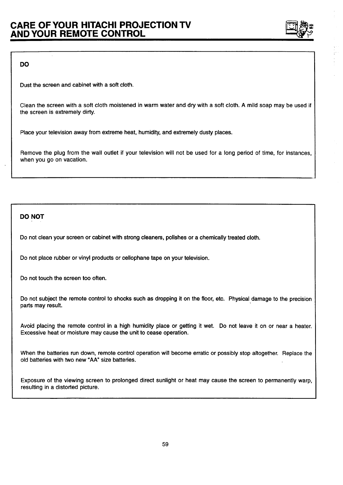 will be of benefit to you. Please read it carefully and apply the knowledge you obtain from it to the proper operation of your HITACHI television.