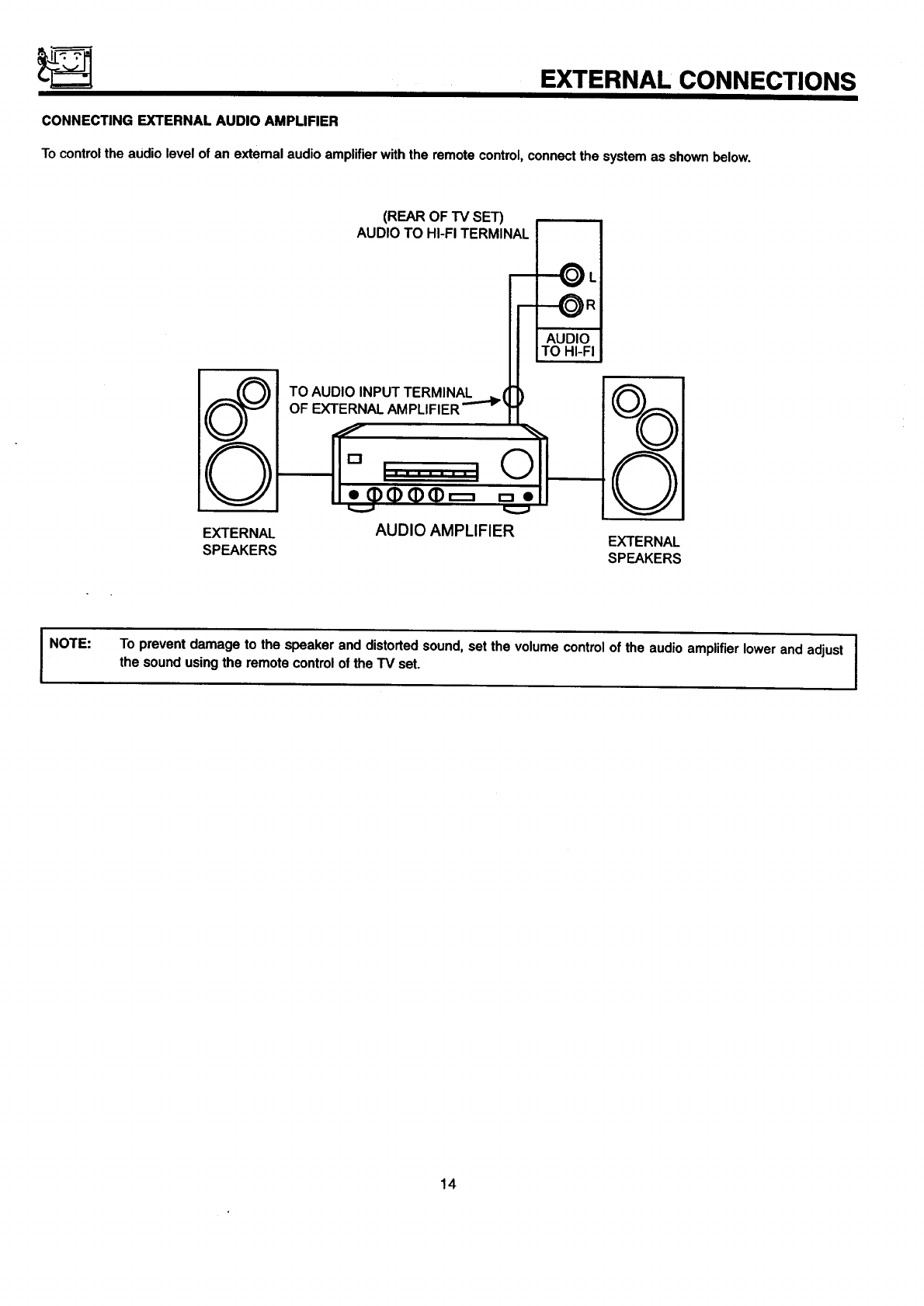 The TV set can generate sound distortion in external devices such as a radio. Please separate radio equipment from I