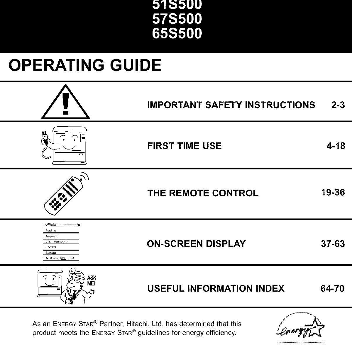 User Manual: Hitachi 51S500 51S500 HITACHI PROJECTION TV - Manuals and Guides View the owners manual for your HITACHI PROJECTION TV #51S500. Home:Electronics Parts:Hitachi Parts:Hitachi PROJECTION TV Manual
