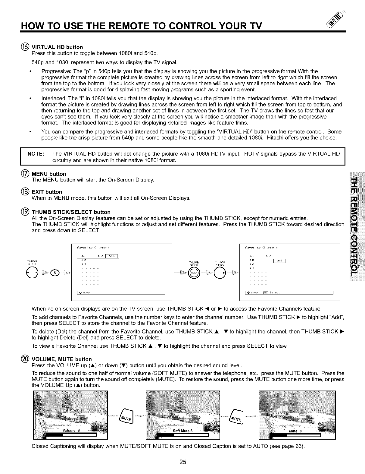 NOTE: This television receiver will display television closed captioning, (1¢cl or I I), in accordance with