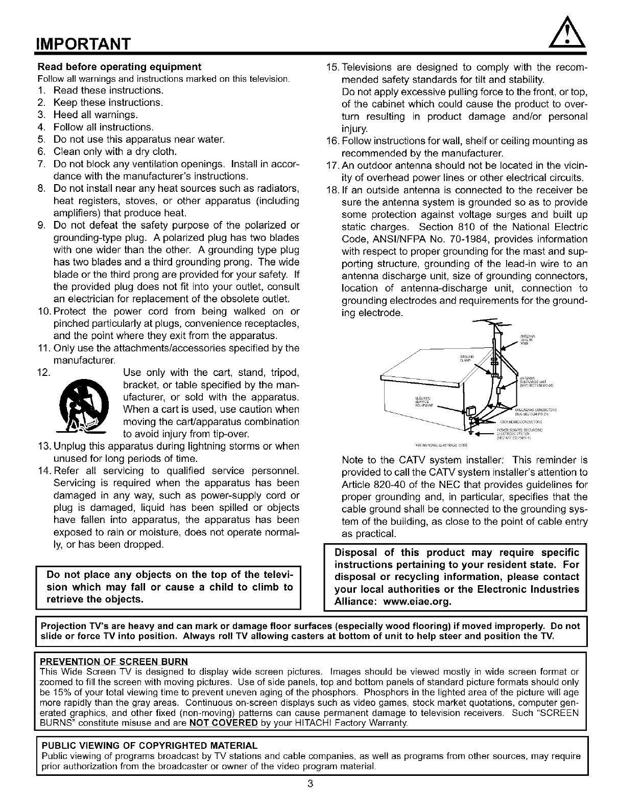 HITACHI Projection/Digital 42 and above TV Manual L0308072 HITACHI Projection/Digital 42 and above TV Owner's Manual, HITACHI Projection/Digital 42 and above TV installation guides