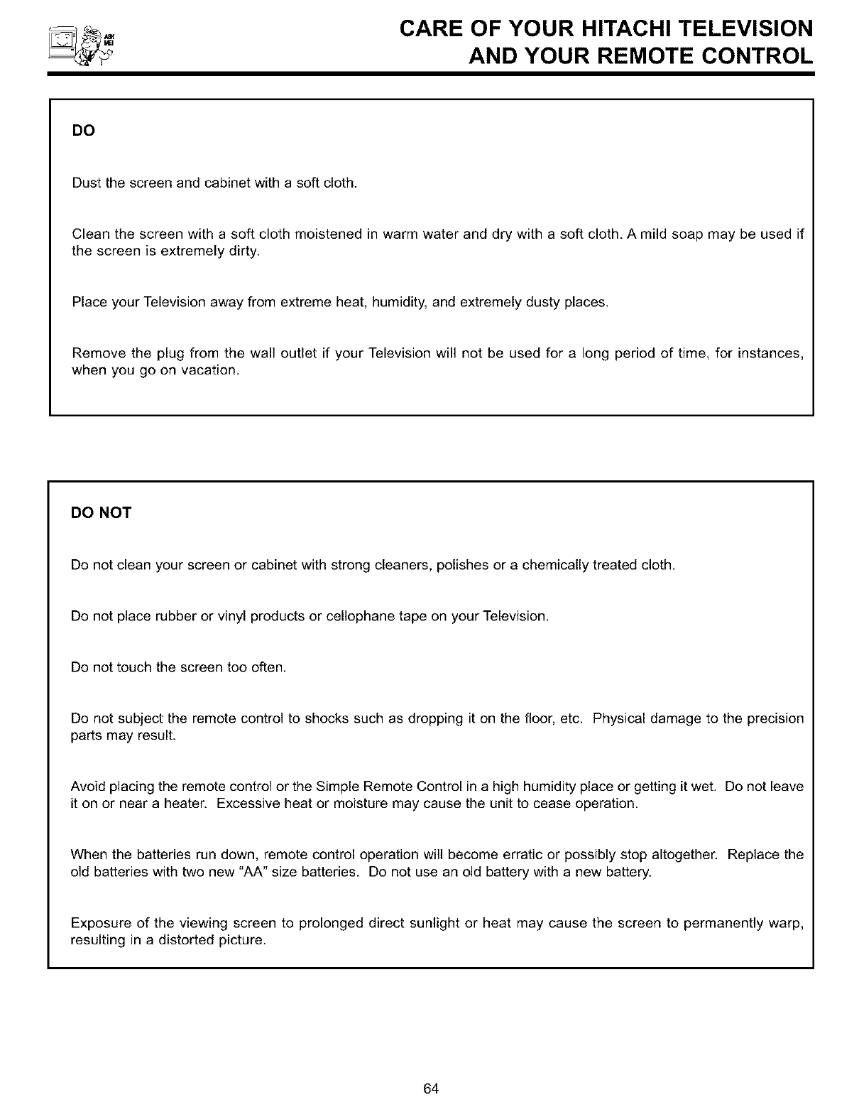 YOUR HITACHI TELEVISION