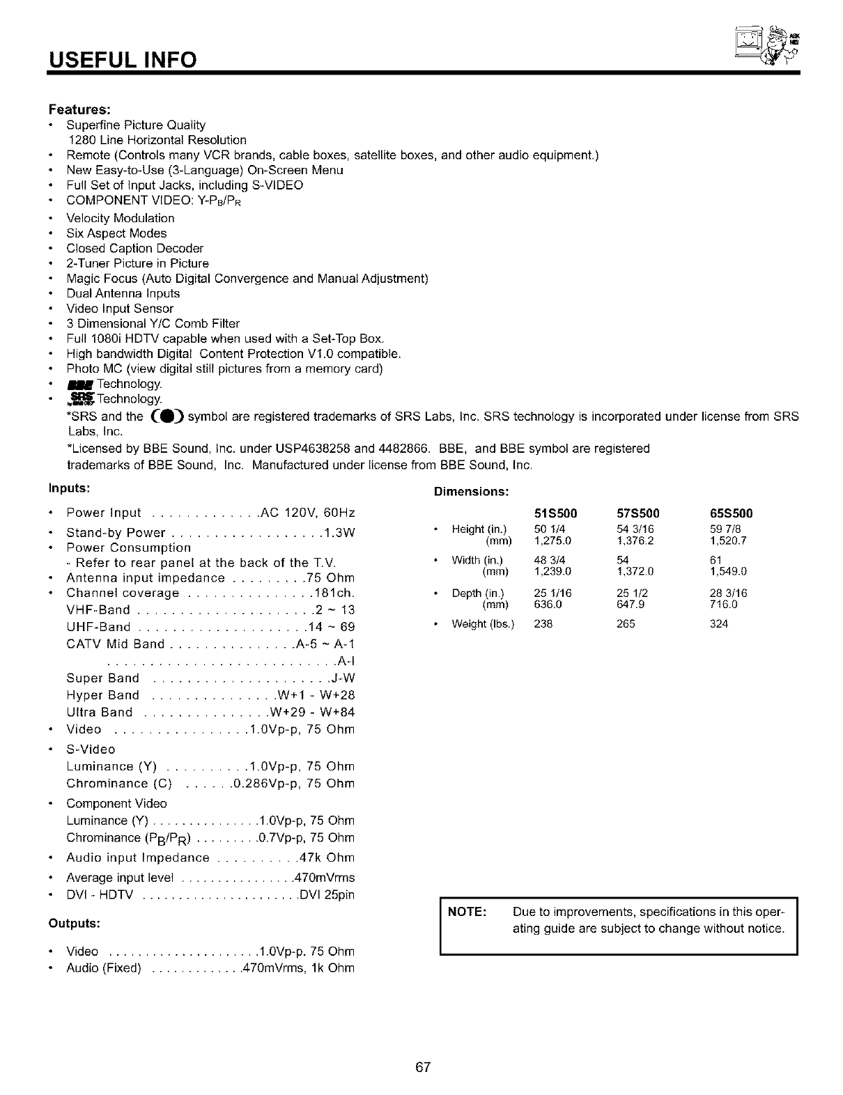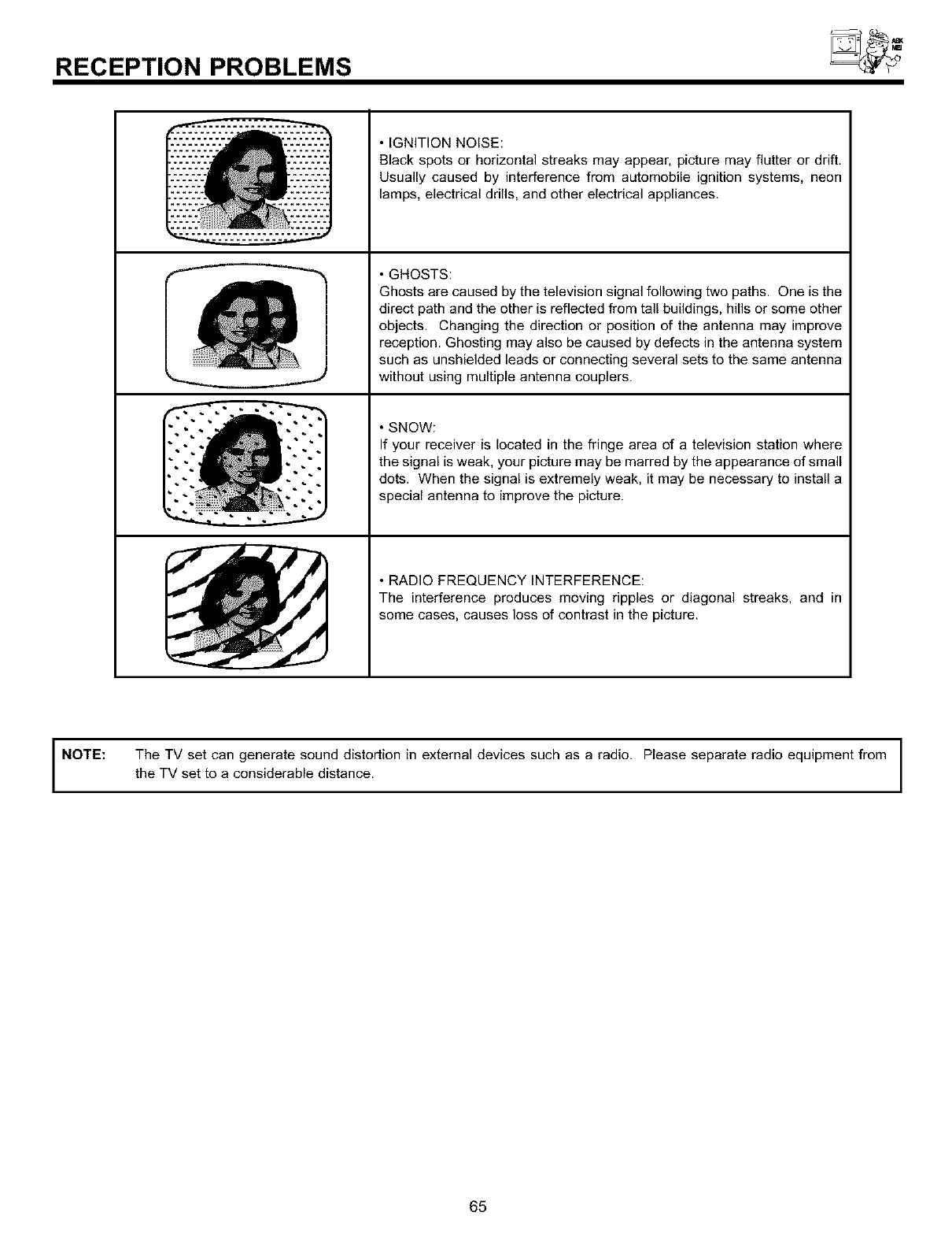 NOTE: • There are no user serviceable parts inside the television.
