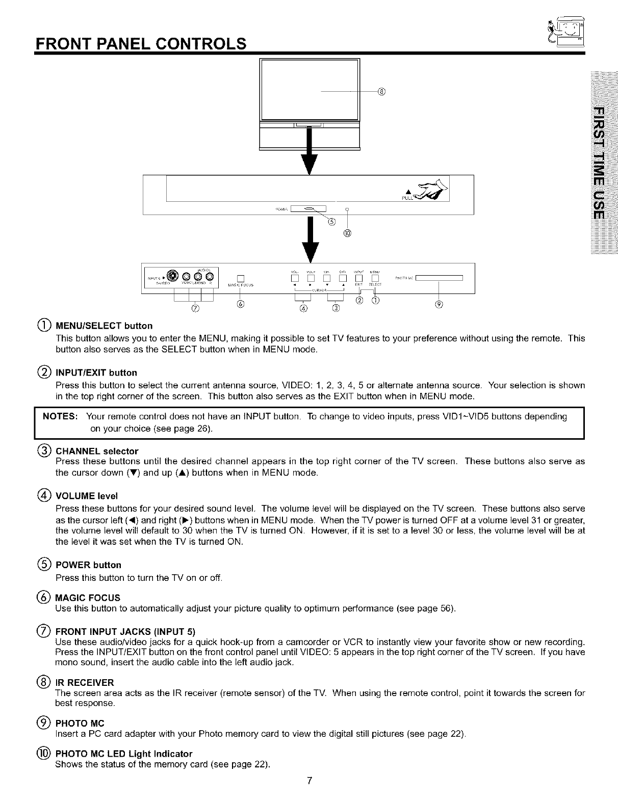 THIS TELEVISION IS DESIGNED TO OPERATE ON 120 VOLTS 60Hz, AC CURRENT. INSERT THE