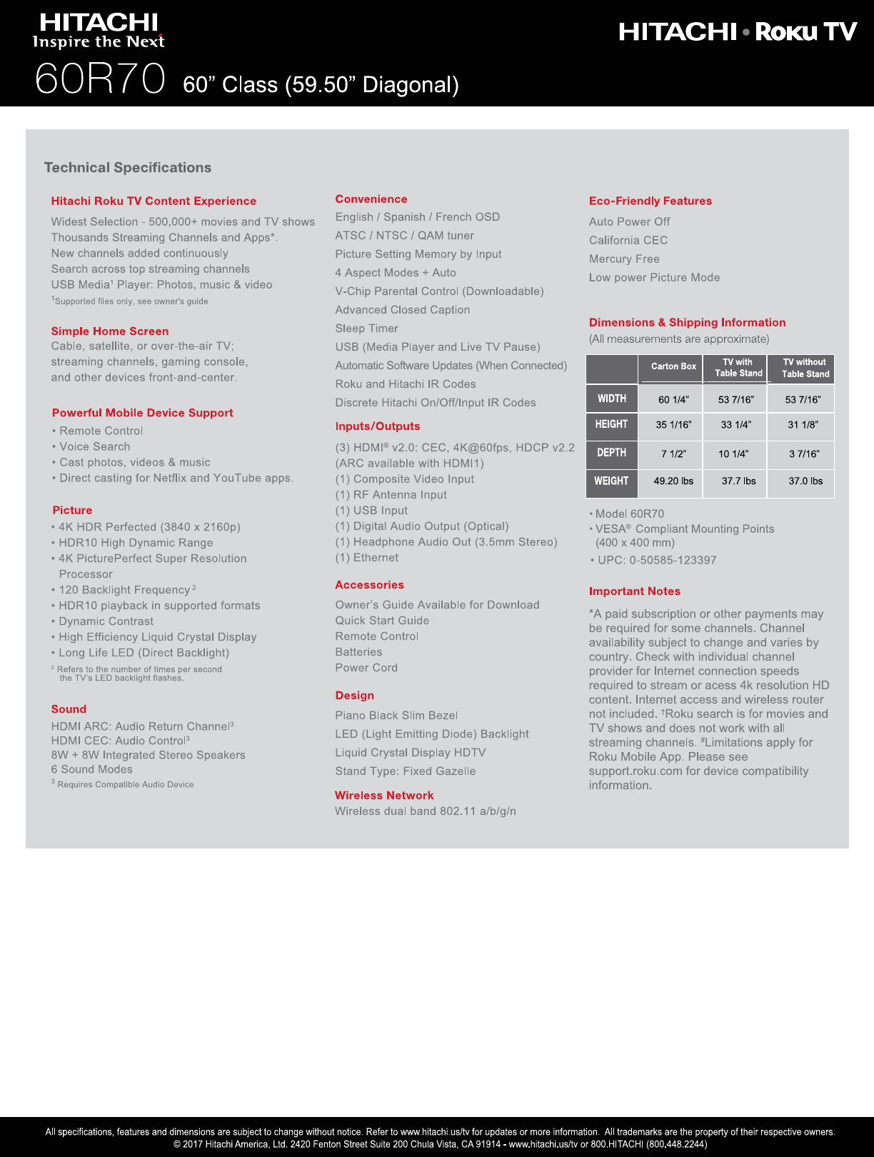 Hitachi 60R70_Hitachi_ss Specification 60R70