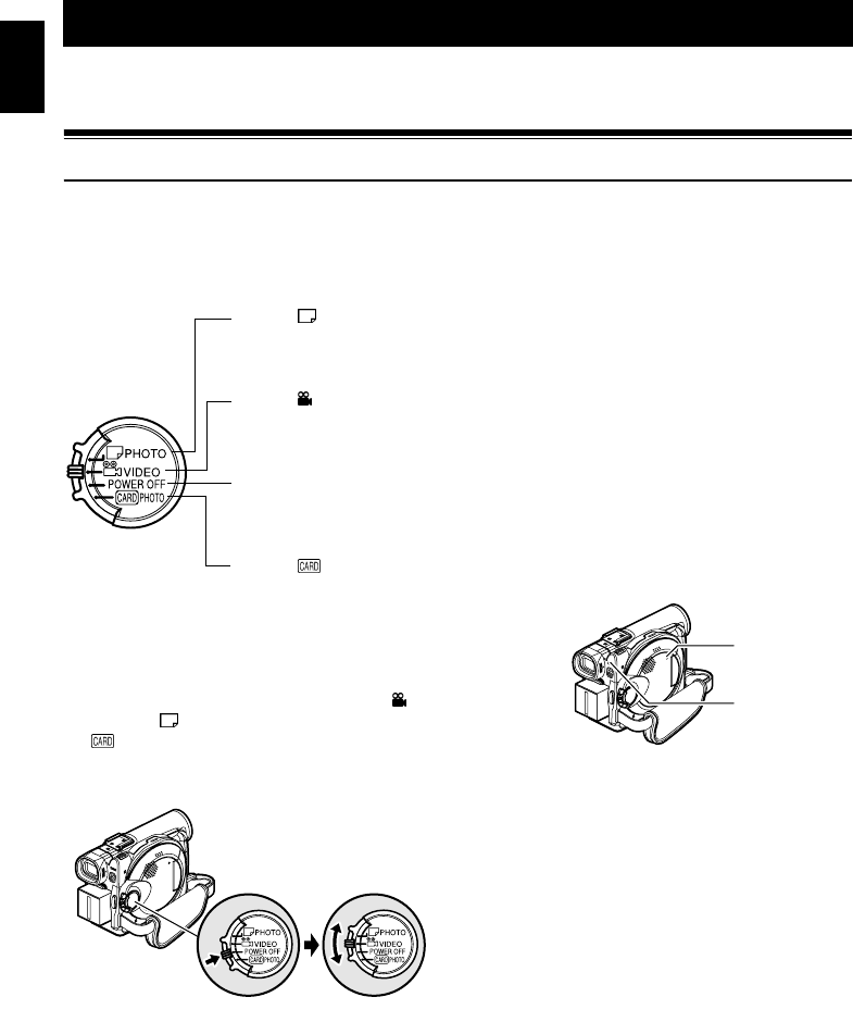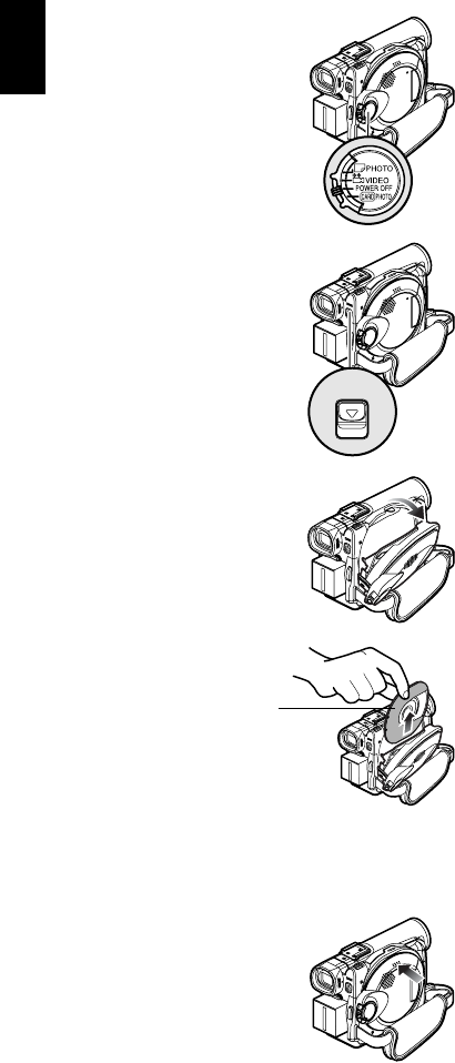 The power switch turns the DVD video camera/recorder on and off, leaving the date/time feature unaffected. If the camera/