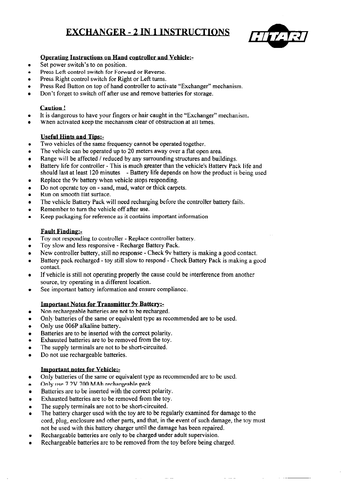 Hitari 60827 Remote Control Toy Transmitter User Manual 15