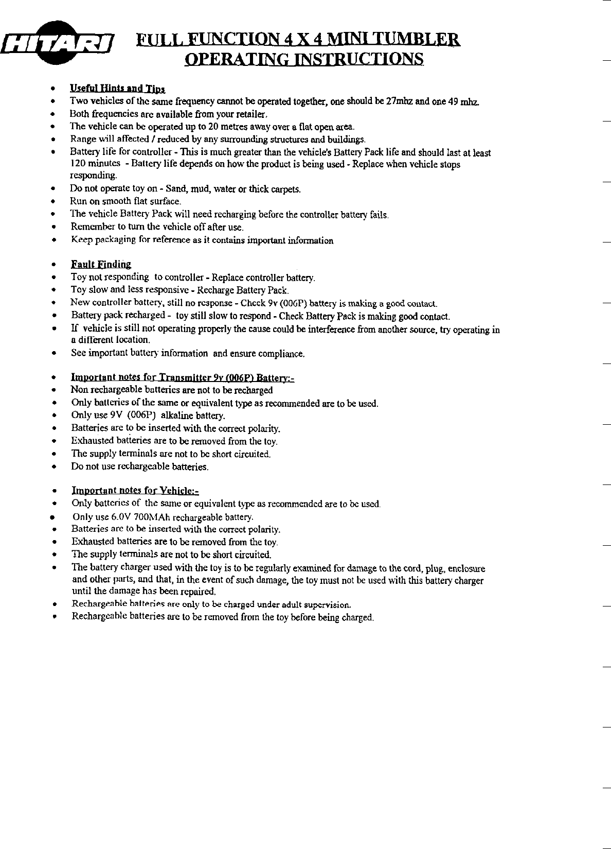 Hitari 609 Toy Remote Control User Manual Unknown