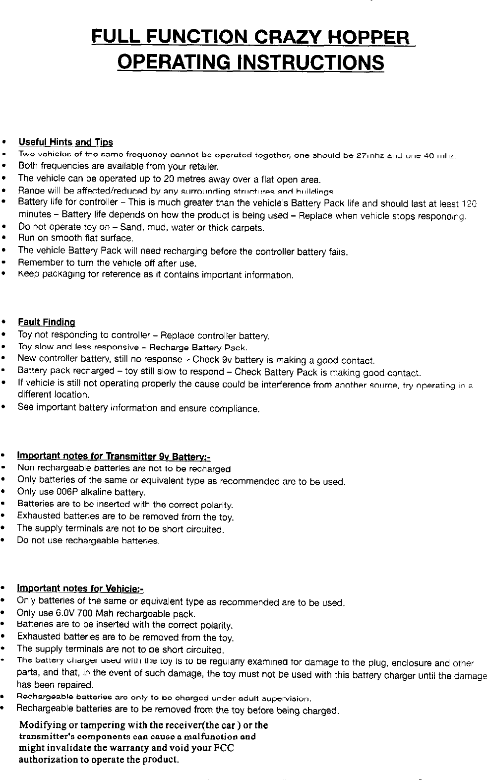 Hitari 60927T Remote Control Toy Transmitter User Manual 12