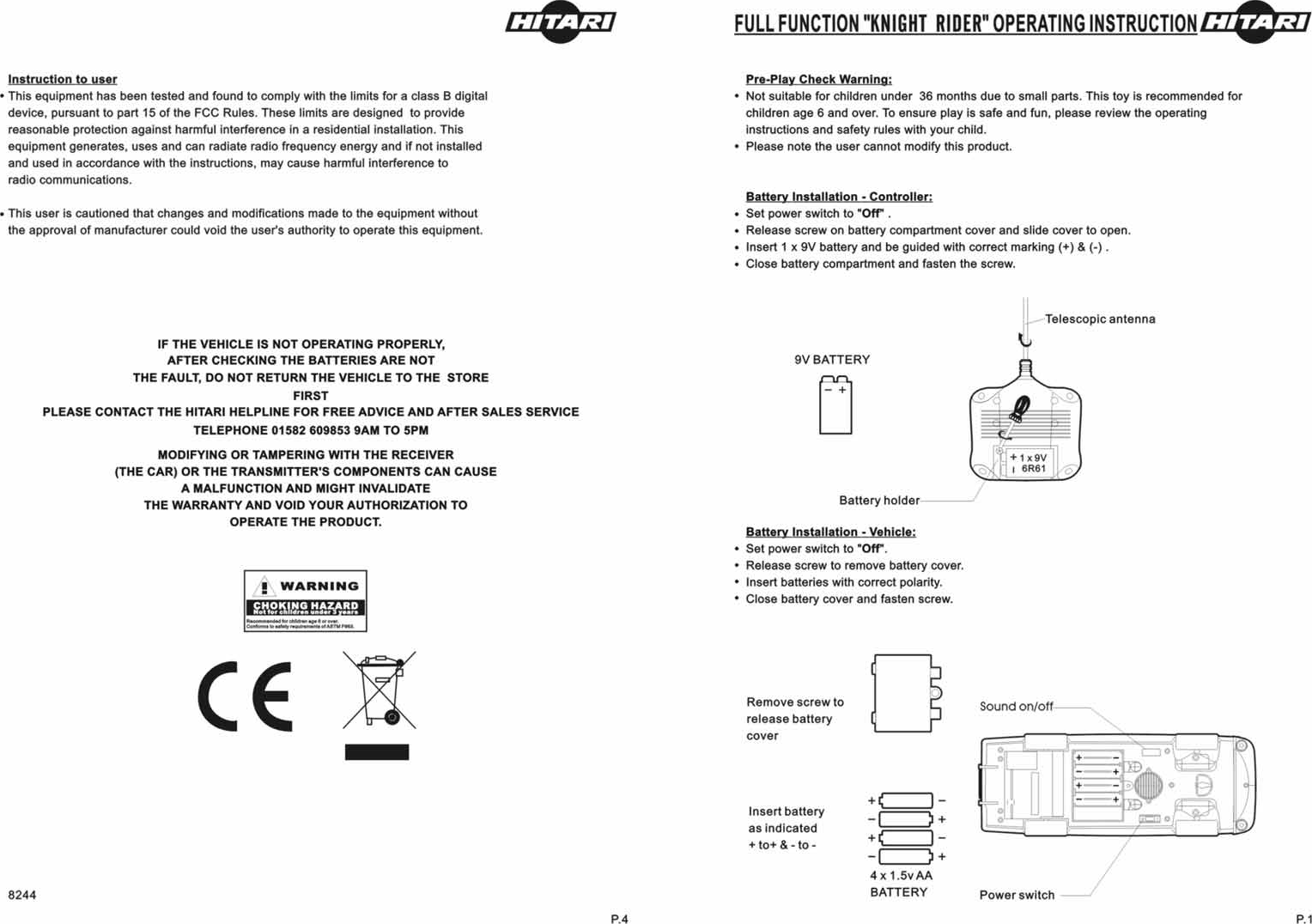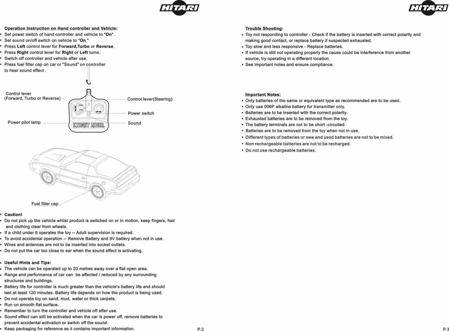 Hitari 8244-27 Radio Controled Car - Knight Rider User Manual