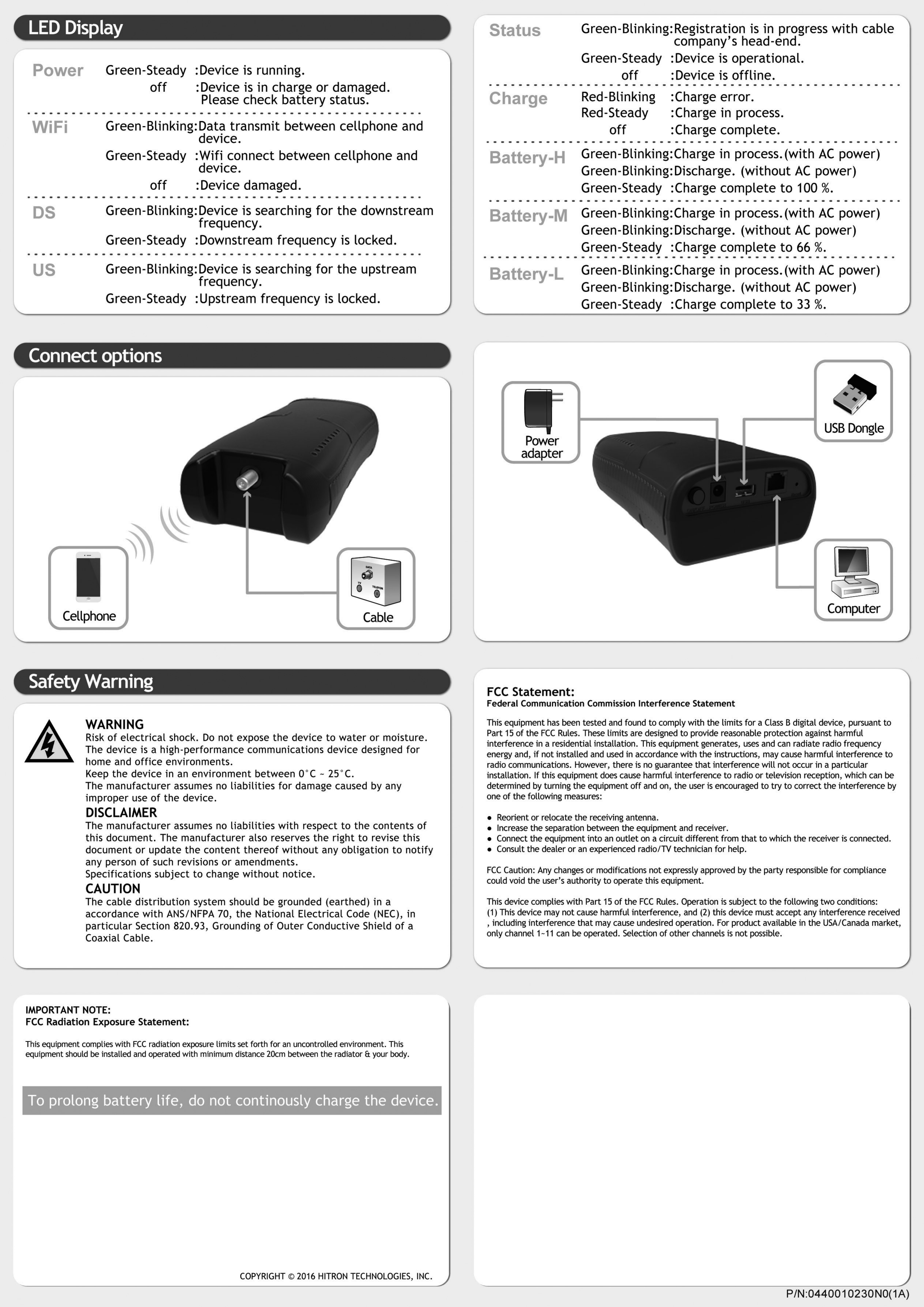 Hitron Technologies Inc. Wireless Docsis Probe Users Manual