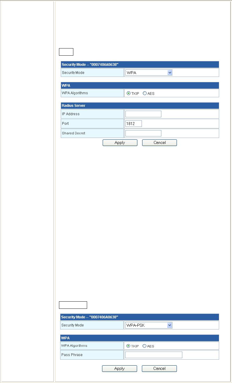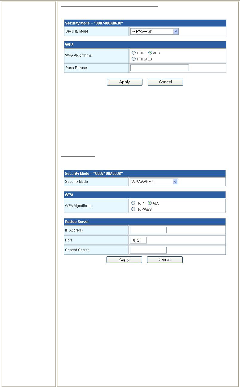 encryption options: TKIP, AES, TKIP-AES and additional setup for RADIUS is required in