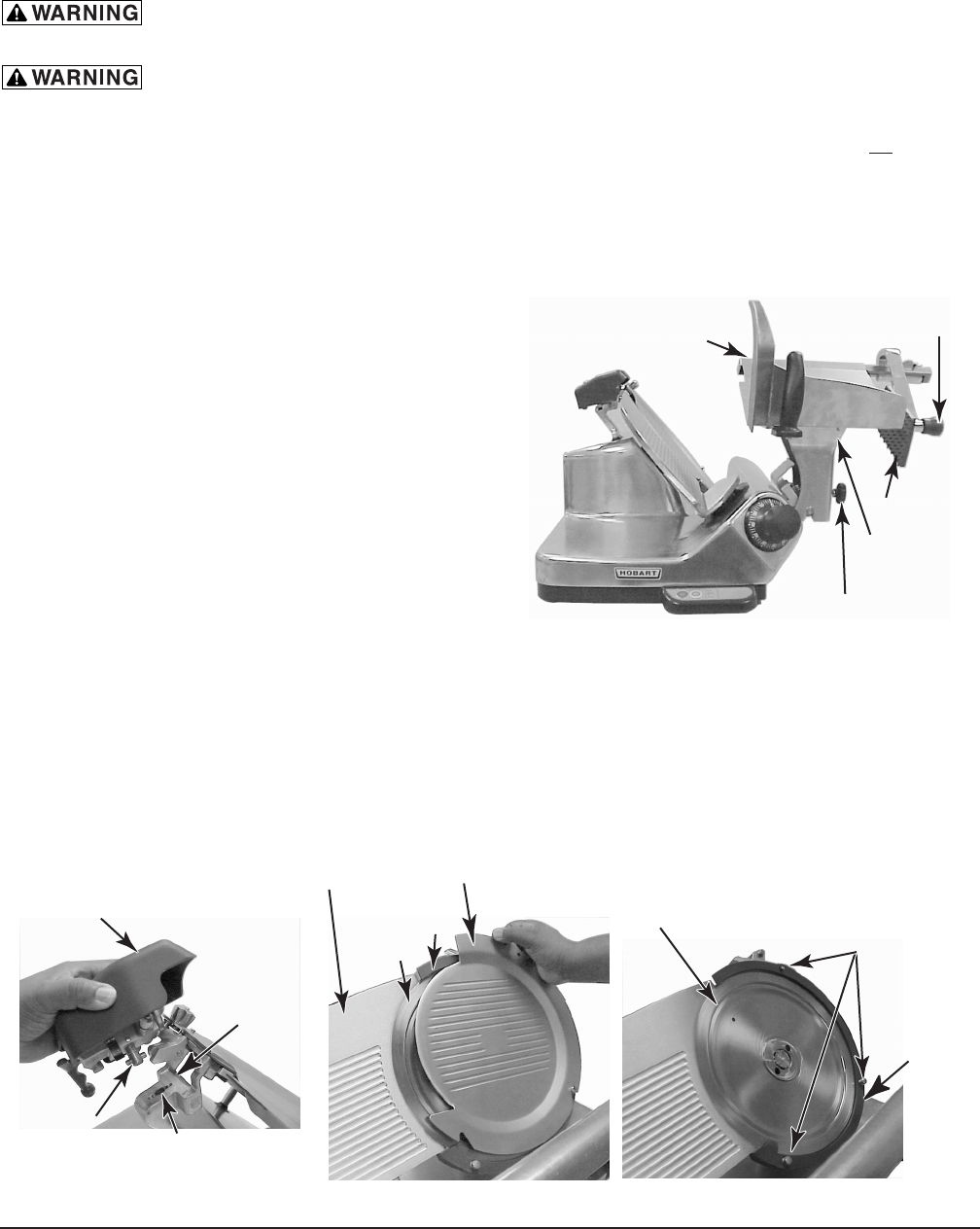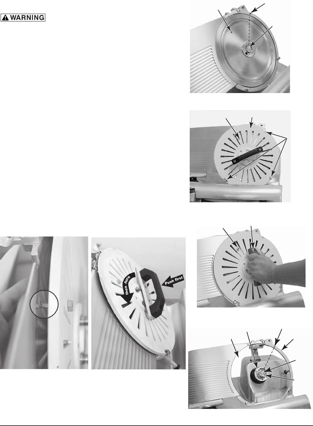 motor hub on the slicer. Refer to pages 10 – 11 for additional information.