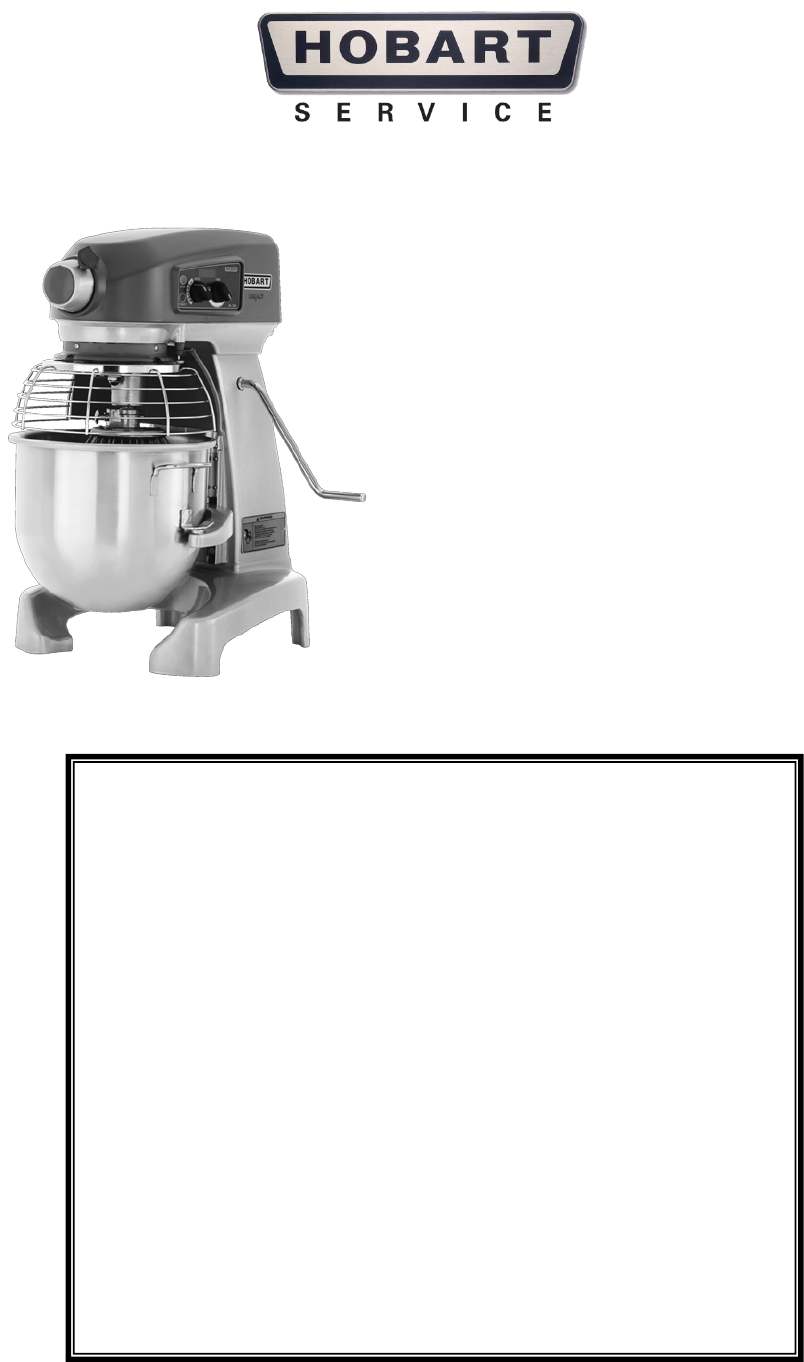 Hobart Hl200 Users Manual Mixer Mfg. After 10/22/09