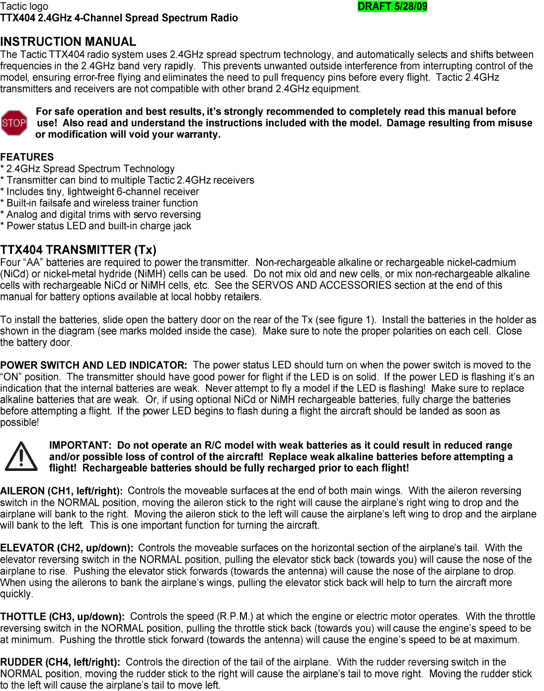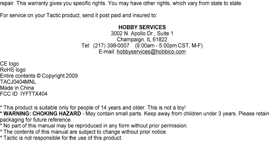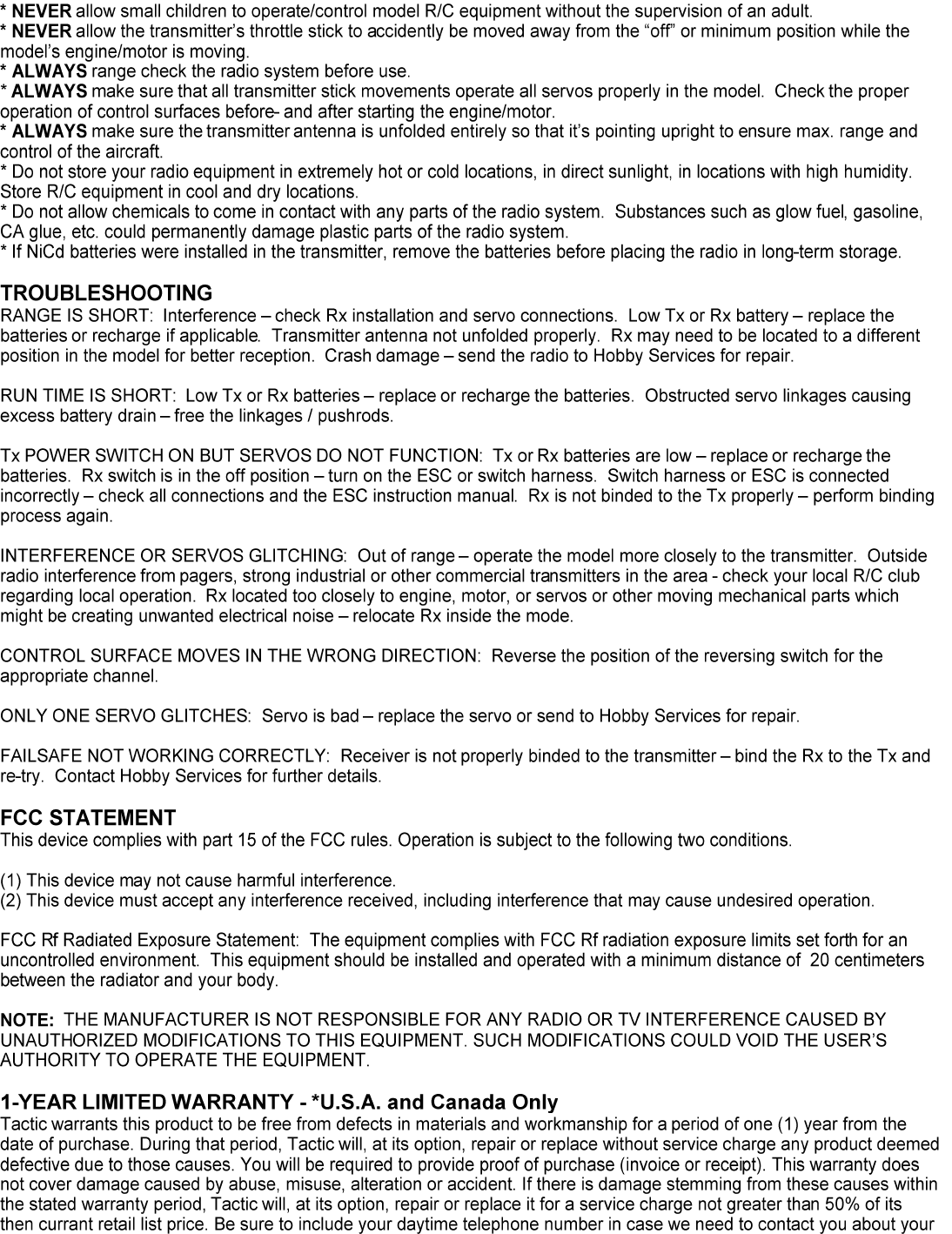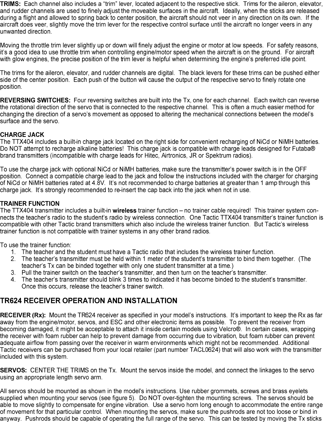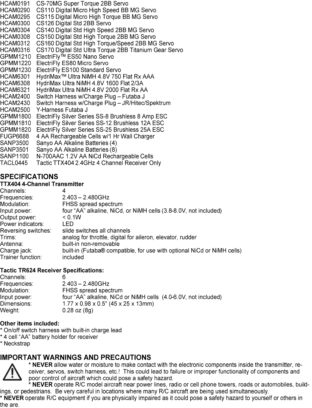 Hobbico TTX404 2.4GHz REMOTE CONTROL TRANSMITTER User Manual TACTIC