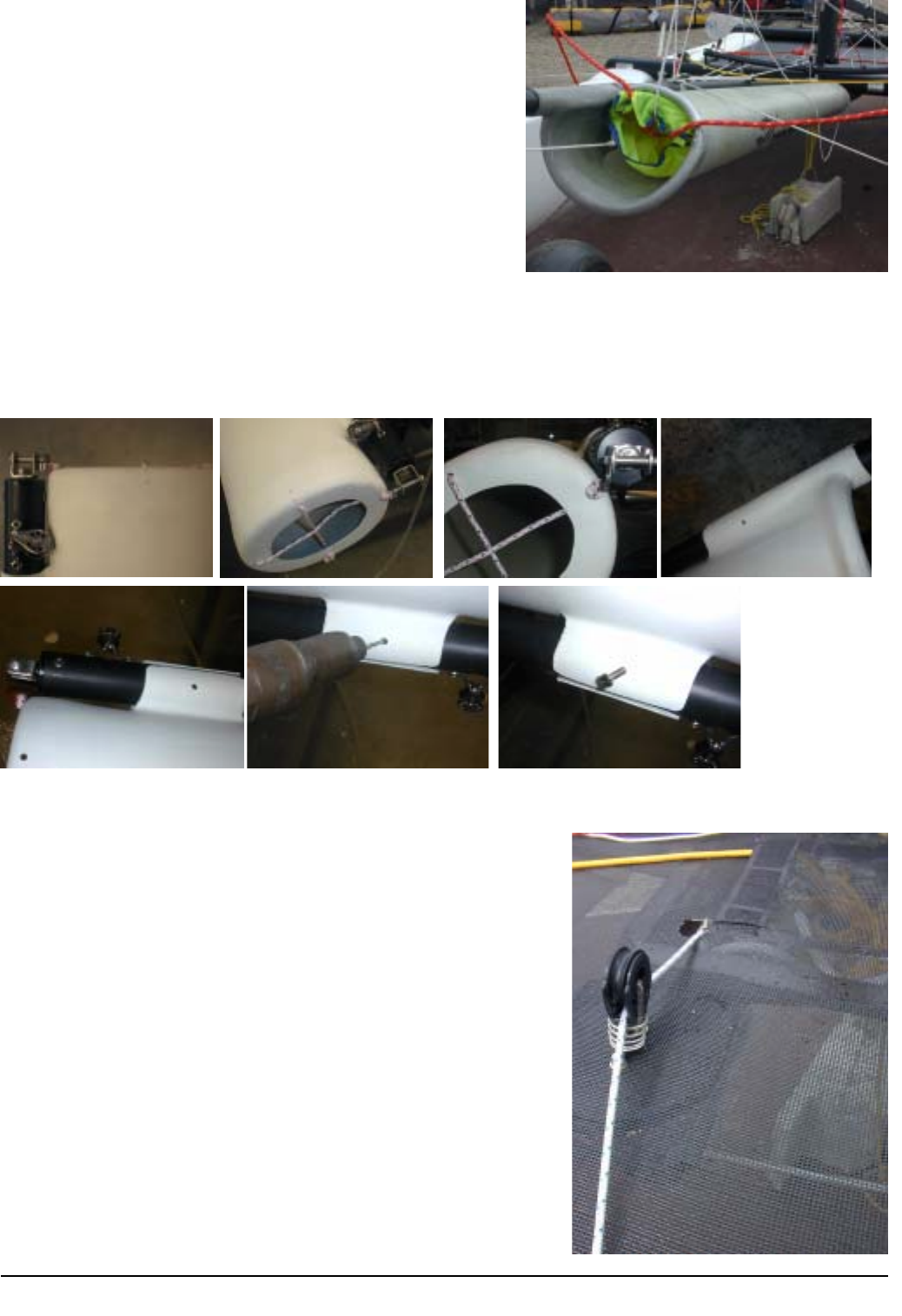 Faire deux autres trous dans le trampoline pour faire passer la drisse sous le trampolin et dans le tube.