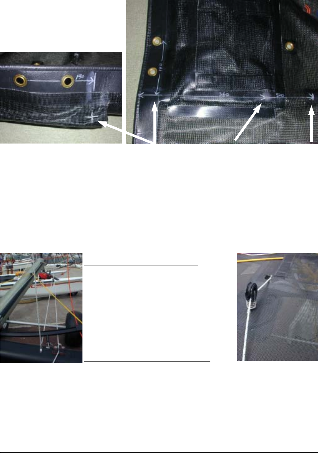 Cut or punch 2 holes in the trampoline. This is for the halyard/retriever line to pass through and