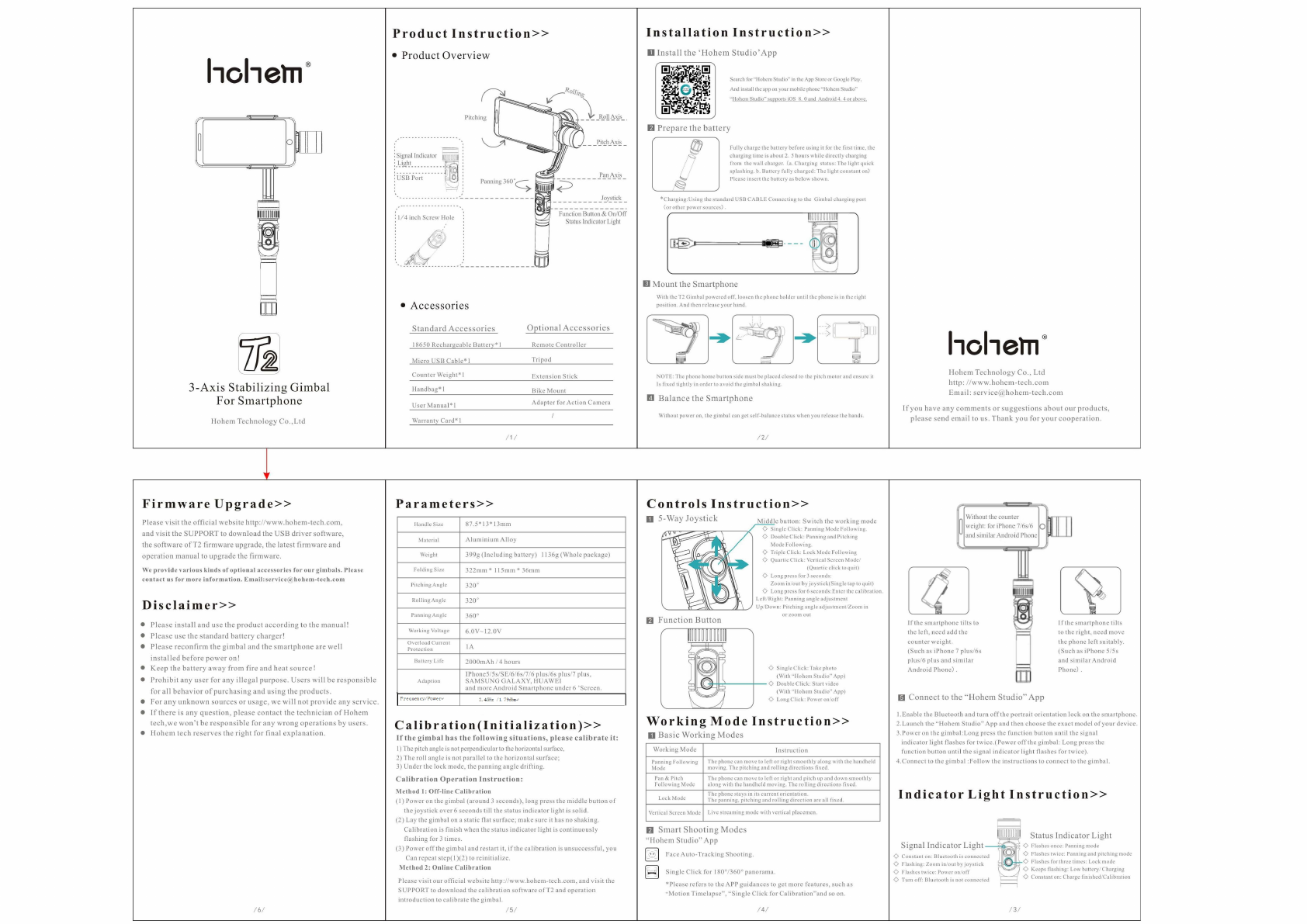 Hohem Technology T2 3-AXIS HANDHELD STABILIZING GIMBAL FOR SMART PHONE User Manual