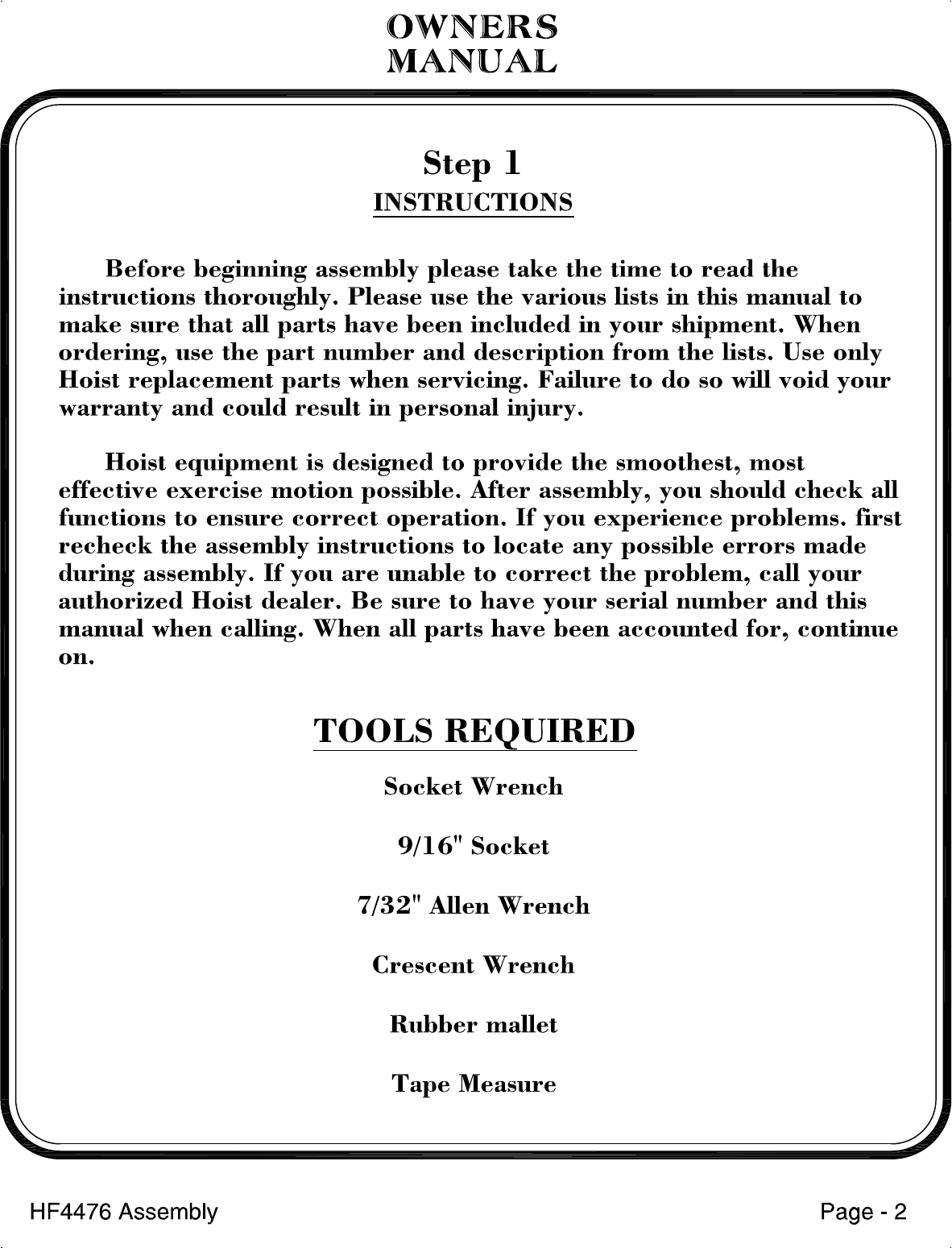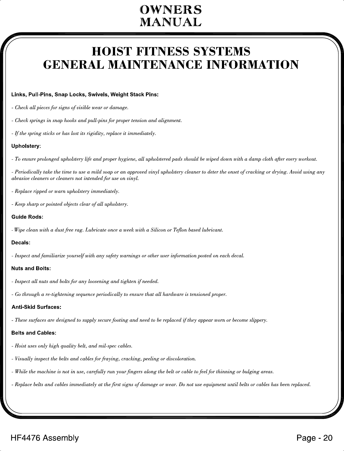 : Hoist-Fitness Hoist-Fitness-Fitness-Equipment-Hf4476-Users-Manual-407546 hoist-fitness-fitness-equipment-hf4476-users-manual-407546 hoist-fitness pdf