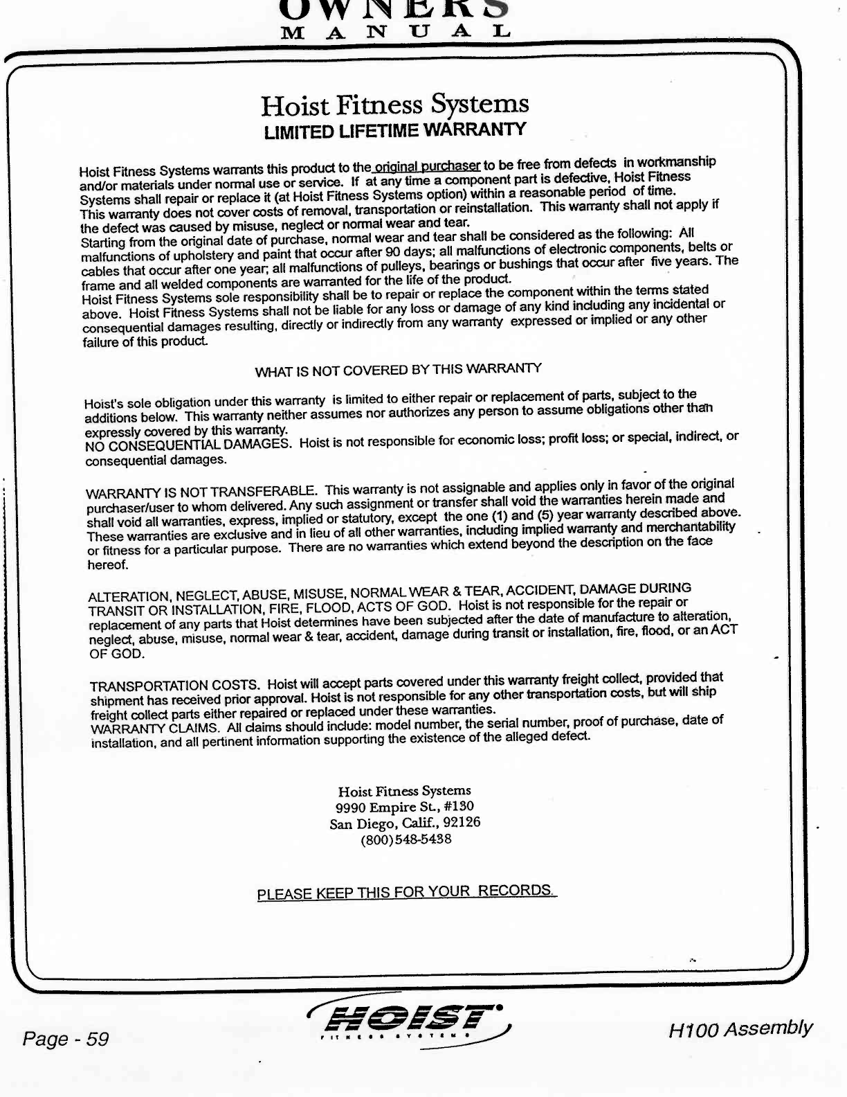 : Hoist-Fitness Hoist-Fitness-H100-Users-Manual-407497 hoist-fitness-h100-users-manual-407497 hoist-fitness pdf