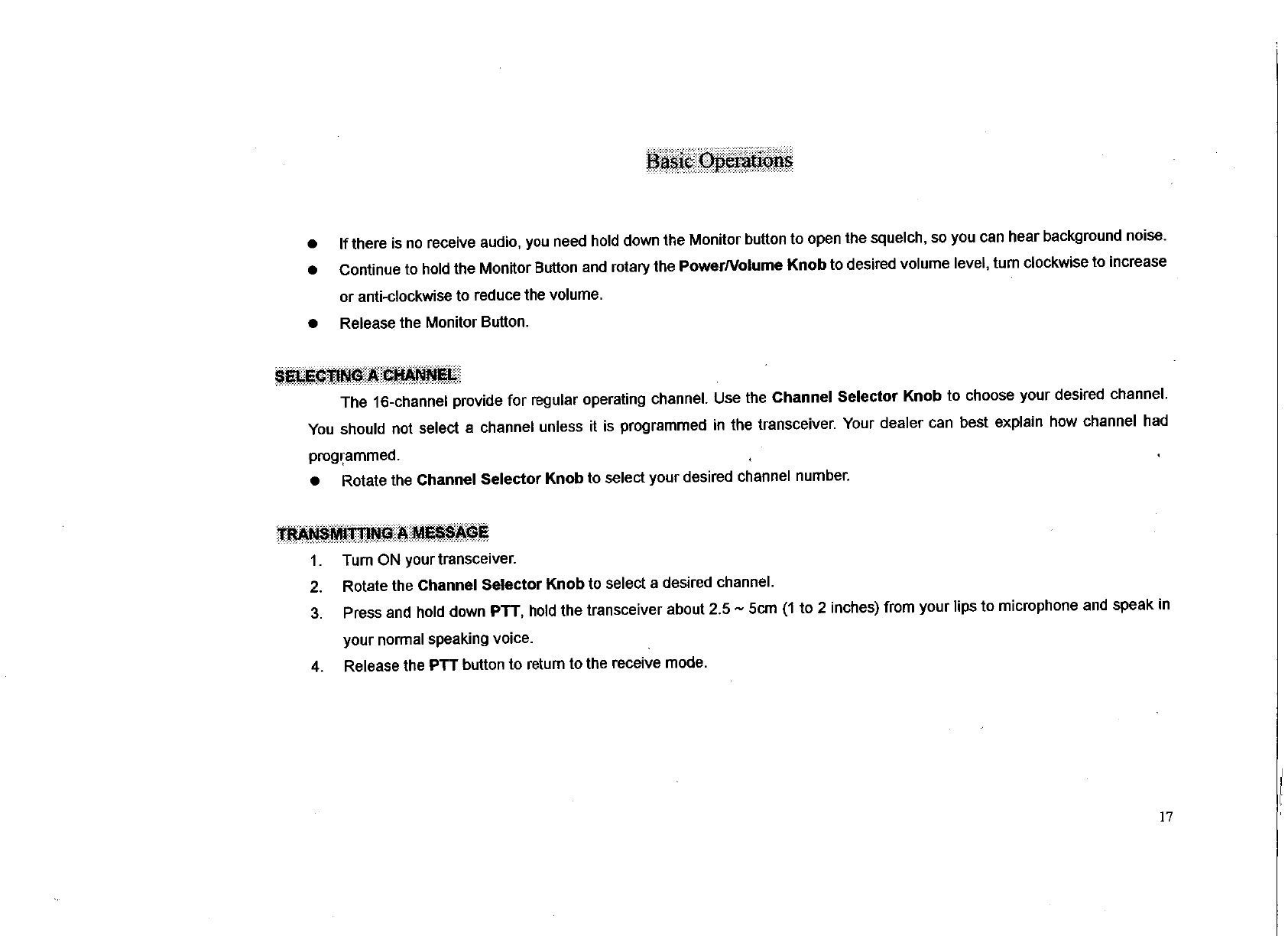 Holzberg Communications, Inc. Low Band Portable Two-Way Radio Users Manual