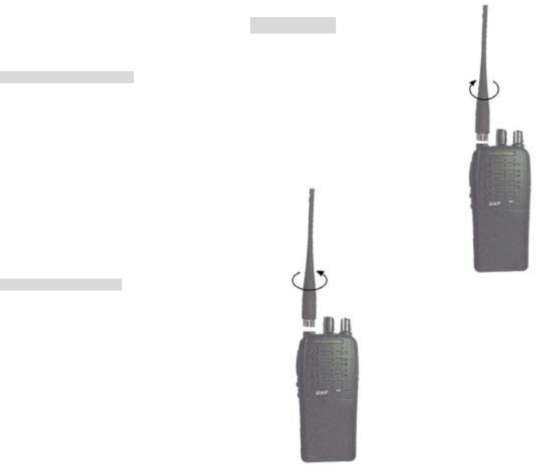 Fasten the antenna to the radio by placing the threaded end of the antenna into the