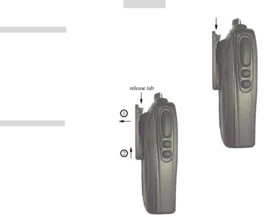 1. Align mounting rails of the radio with the grooves of belt clip.
