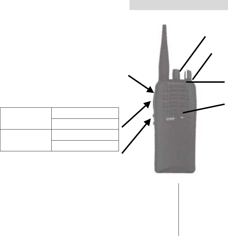3. Press and hold down PTT, hold the transceiver about 2.5 ~ 5cm (1 to 2 inches) from your lips to microphone and speak in