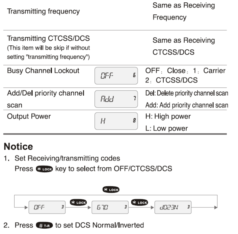 50 CTCSS and 104 DCS Normal/Inverted selectable