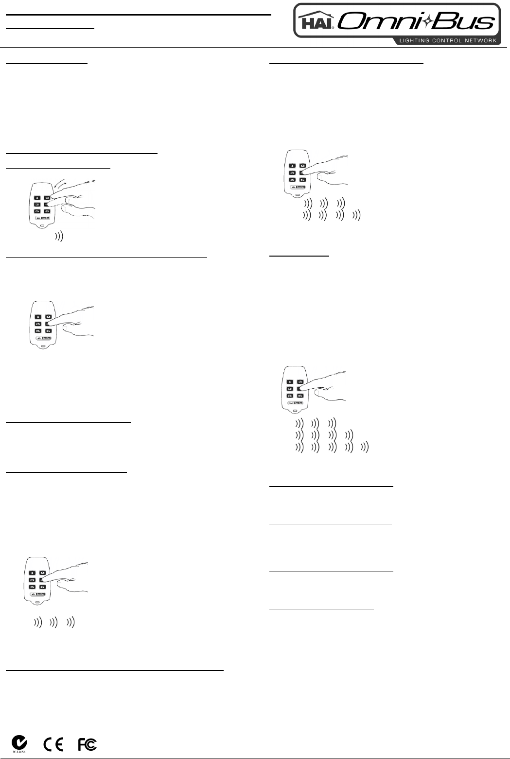 Home Automation 125A00 HAI Omni-Bus Keyfob Remote Control User Manual