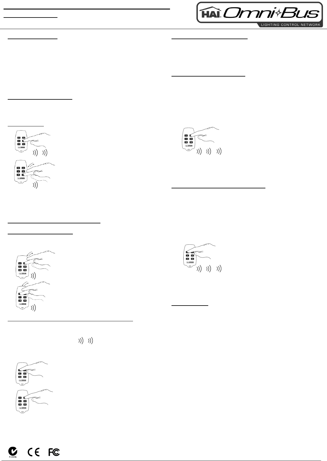 o Requires an HAI Omni-Bus RF Transceiver or HAI Omni-Bus