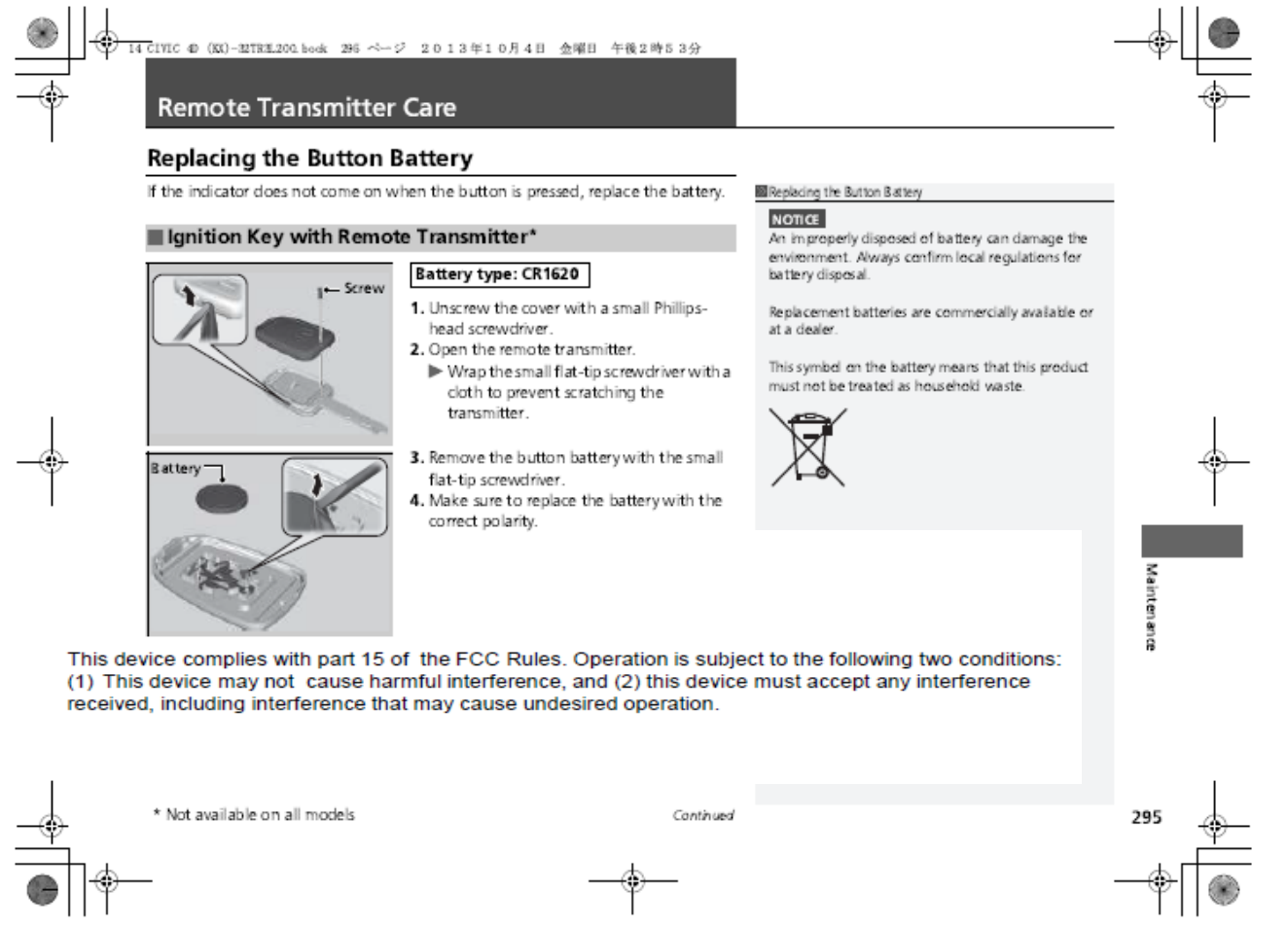 Honda Lock Mfg HLIK6-1TA Keyless transmitter User Manual 1