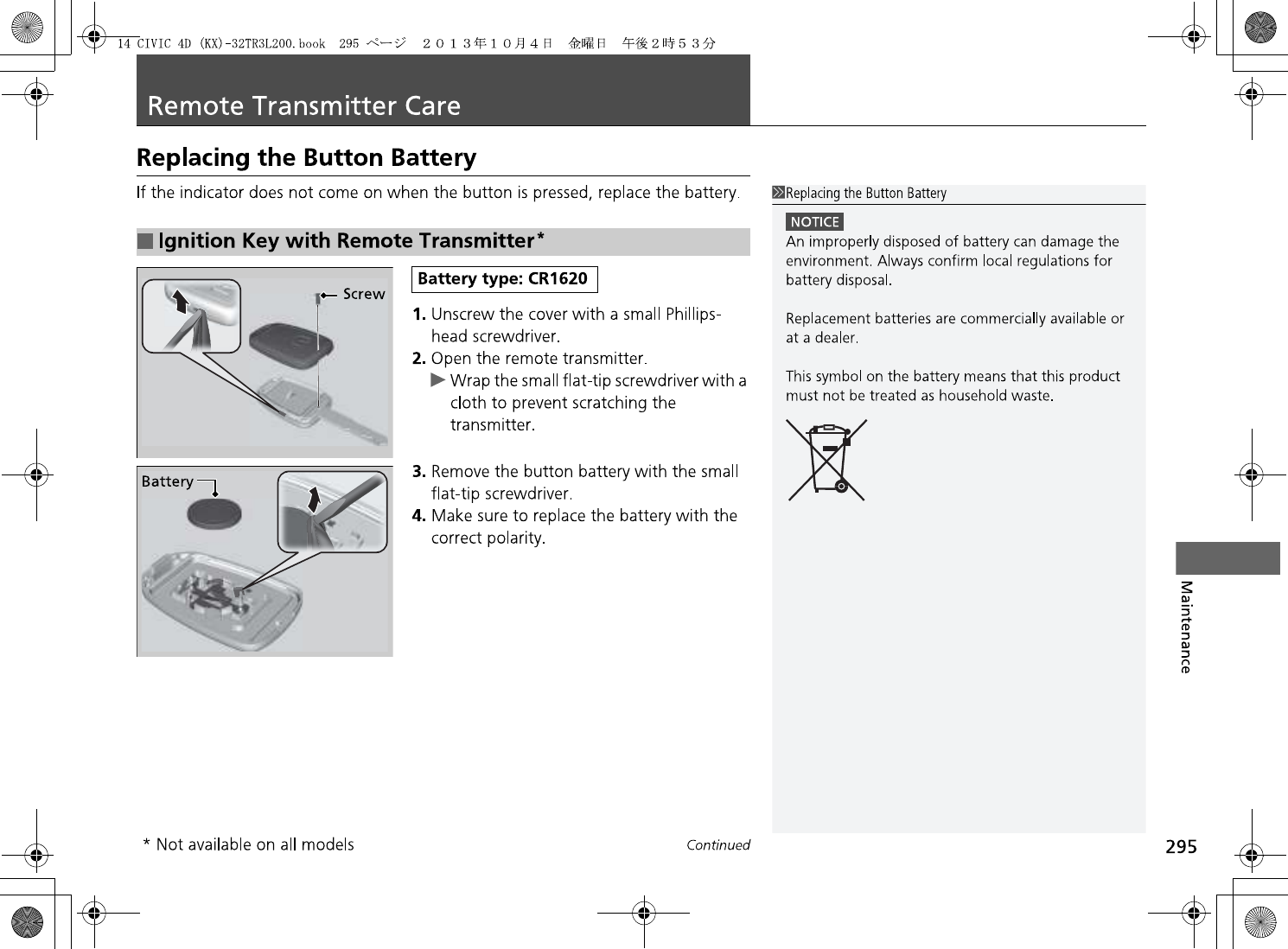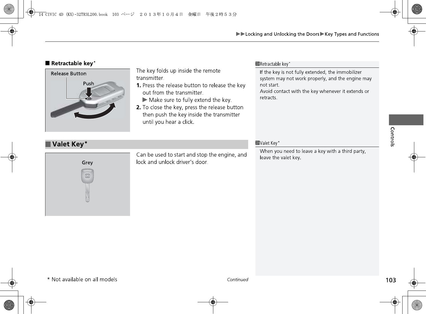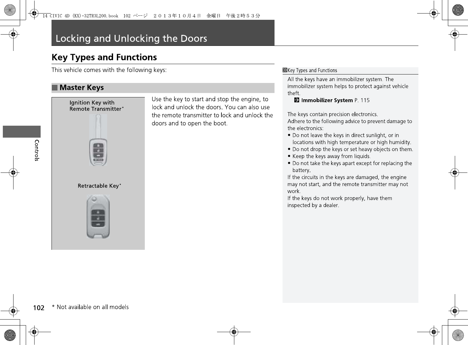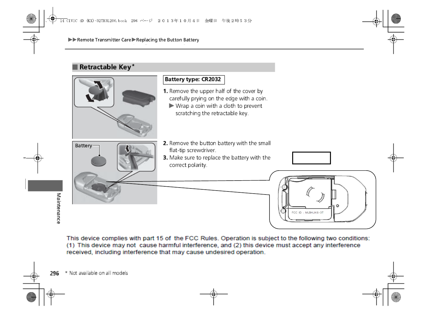 Honda Lock Mfg. Co., Ltd. Keyless transmitter 14 CIVIC 4D KX 32TR3L200 print