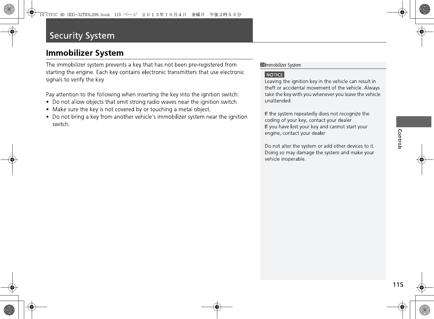 Honda Lock Mfg HLIK6-3T Keyless transmitter User Manual 14 CIVIC 4D KX 32TR3L200 print