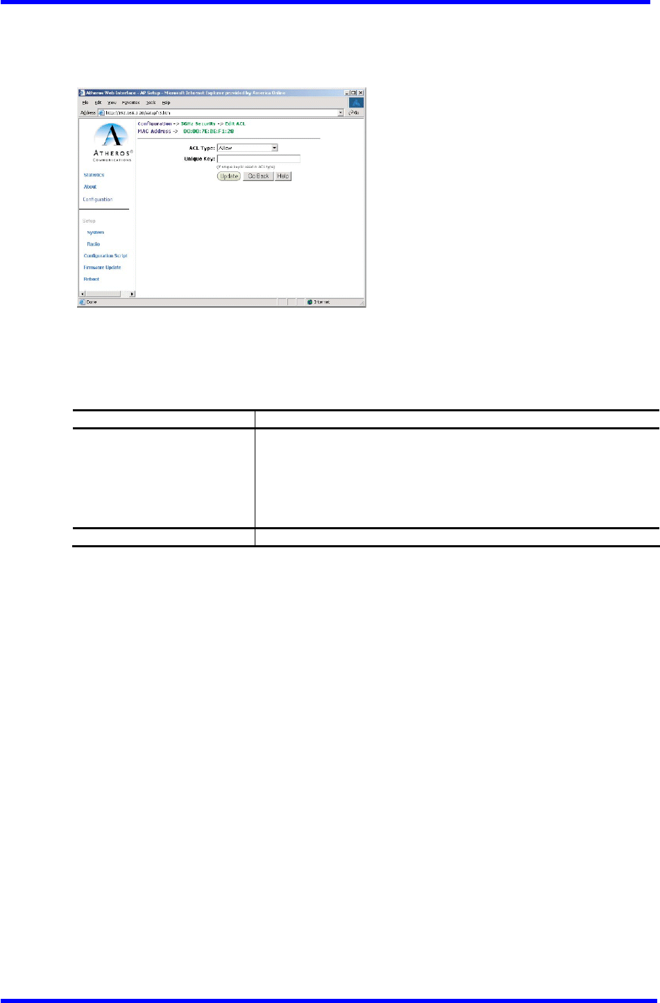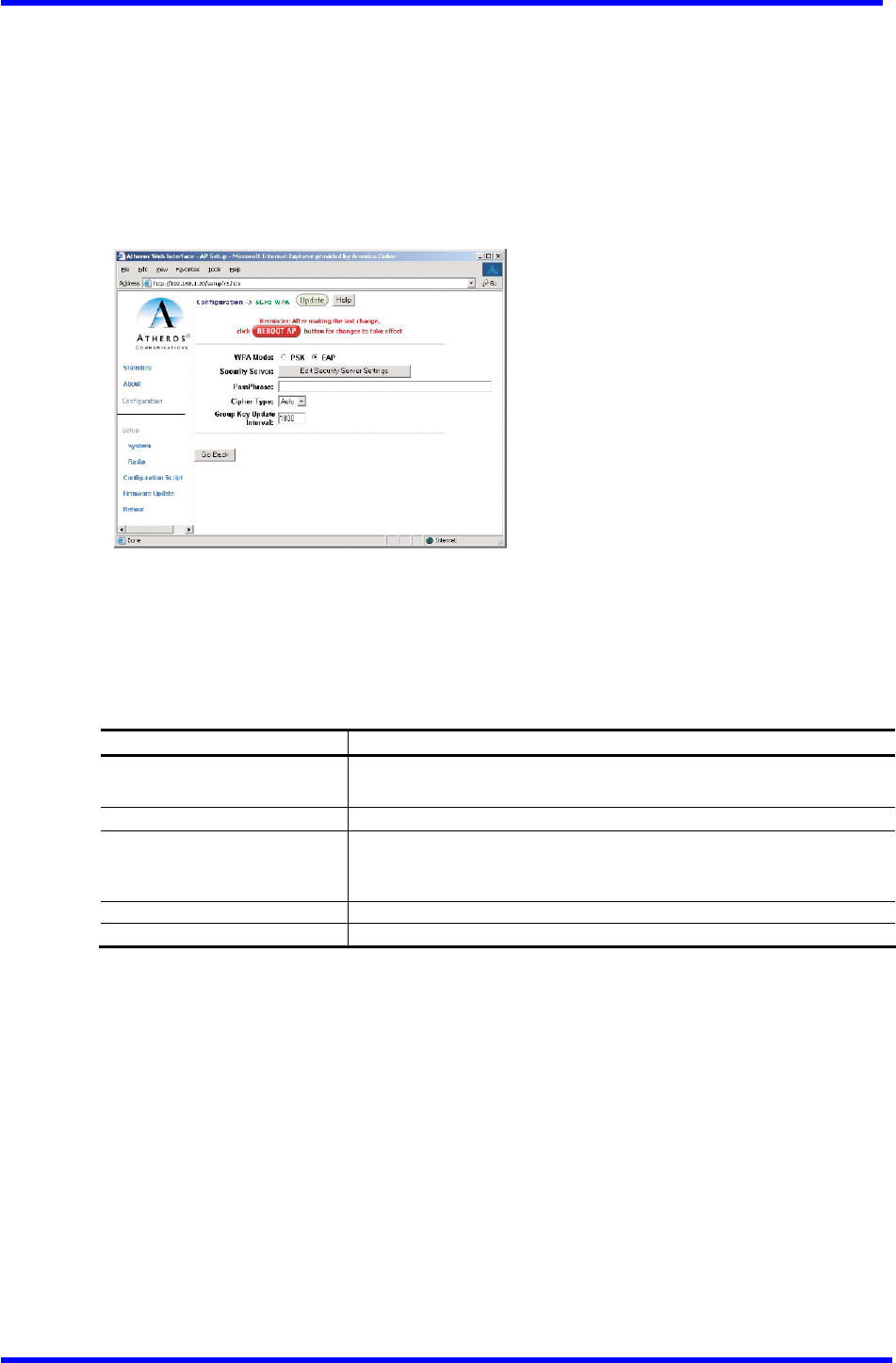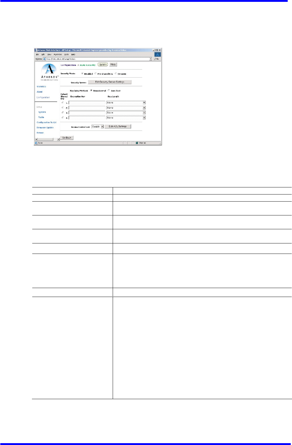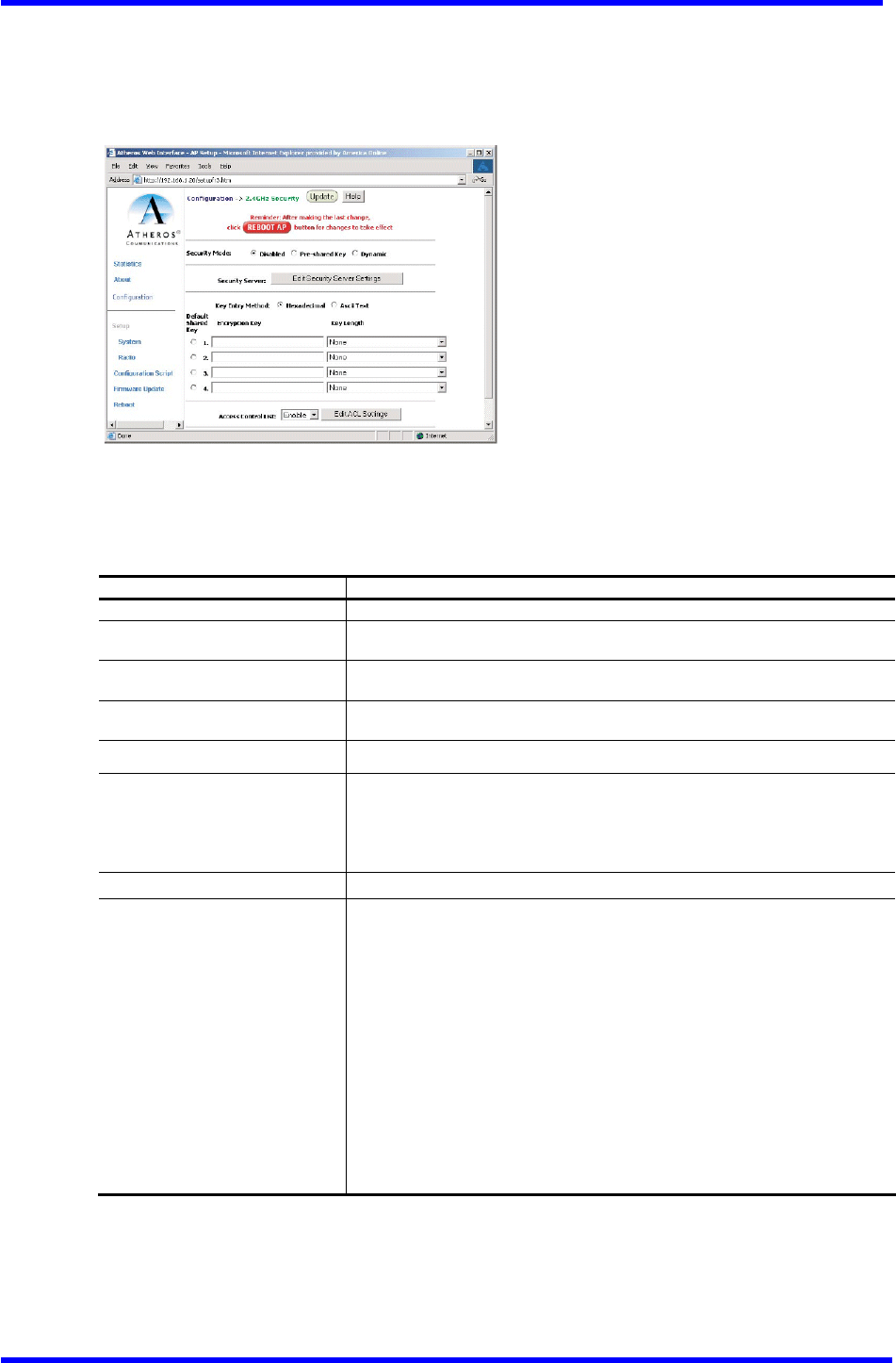 Encryption Specifies current state of encryption; AES and/or WEP, and