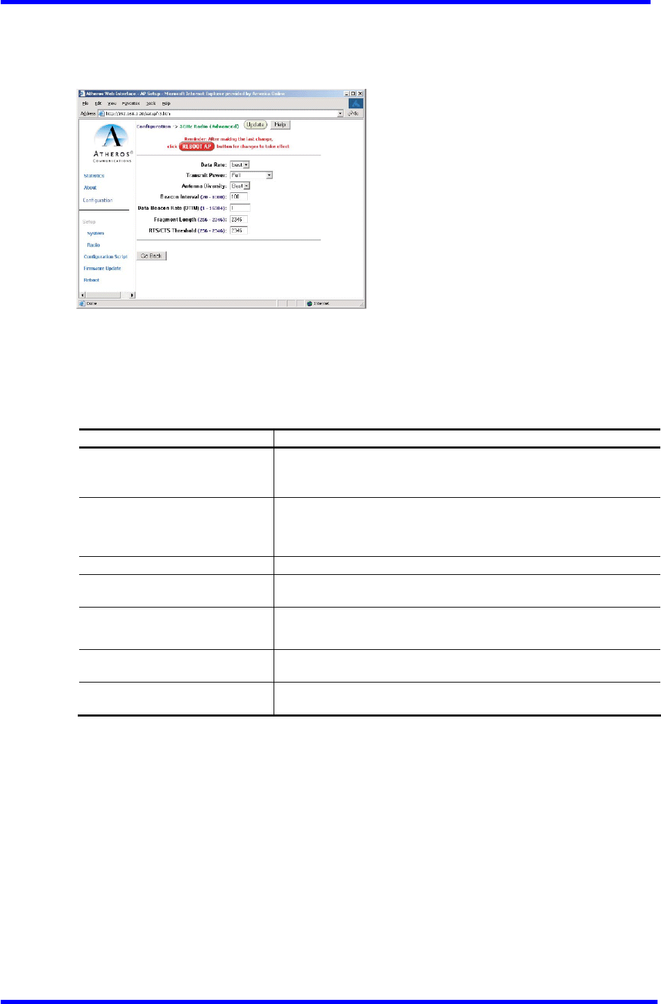 Data Rate (Mbps) Specifies the transmit and receive data rate in Mbps.