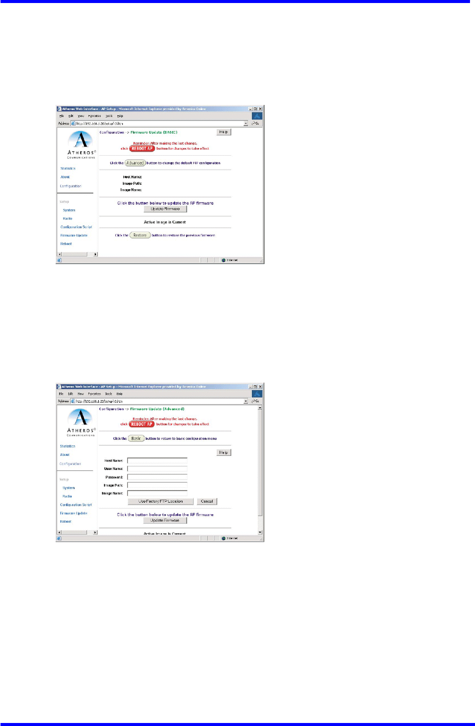 1. From the Firmware Update Basic window, click on Advanced. The AP Firmware