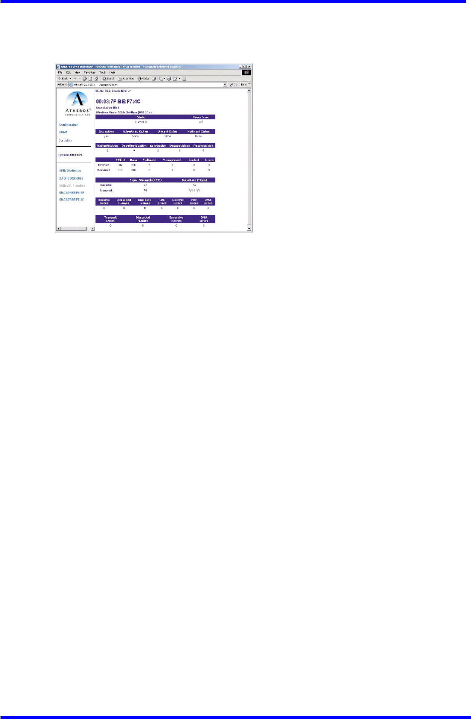 From the AP Web Server, choose the Statistics hyperlink to go to the Access Point