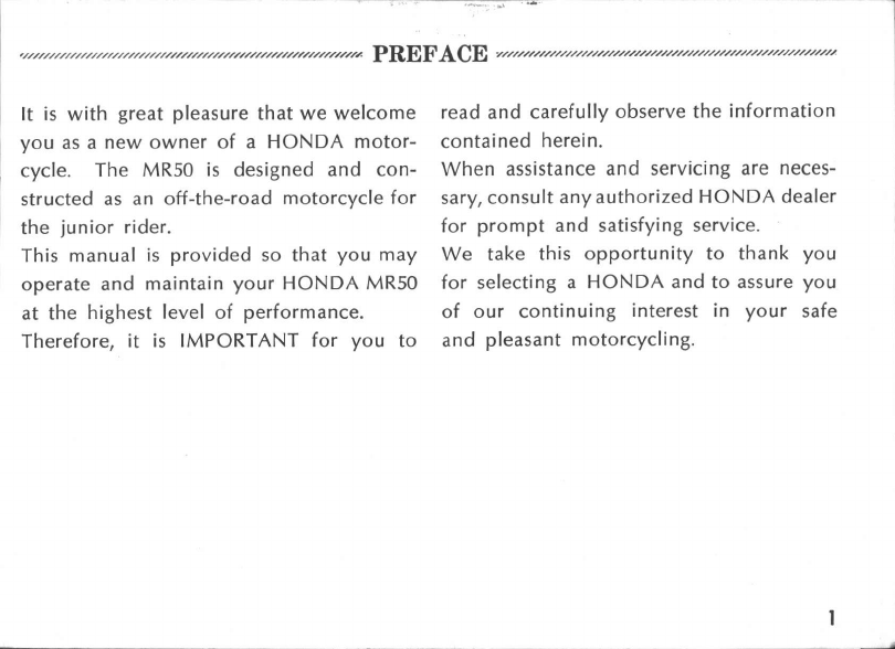 Honda 1974 Mr50 Owners Manual