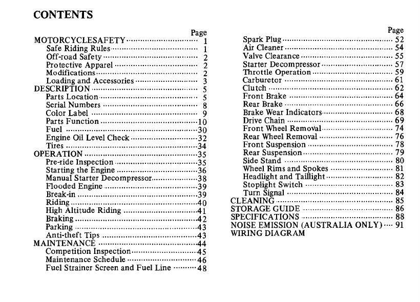 Honda 1985 Xr600R Owners Manual