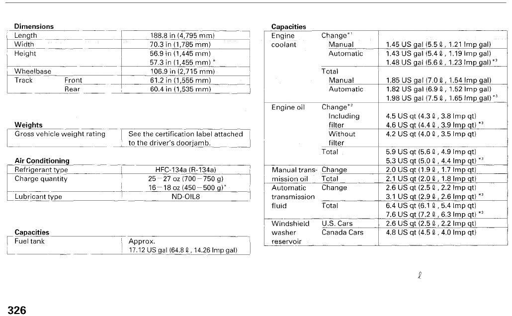 What gasoline to use, how to break-in your new vehicle, and how to load luggage and other cargo.
