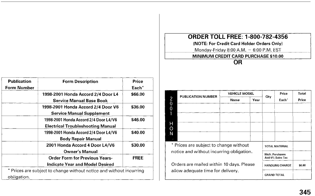Owners Manual Pdf AC0101OM 2001 Honda Accord Owners Manual Pdf | SERVICE MANUAL OWNERS
