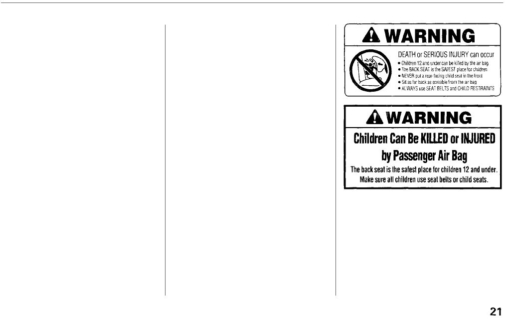Proper use and care of your vehicle's seat belts, and Supplemental Restraint System.