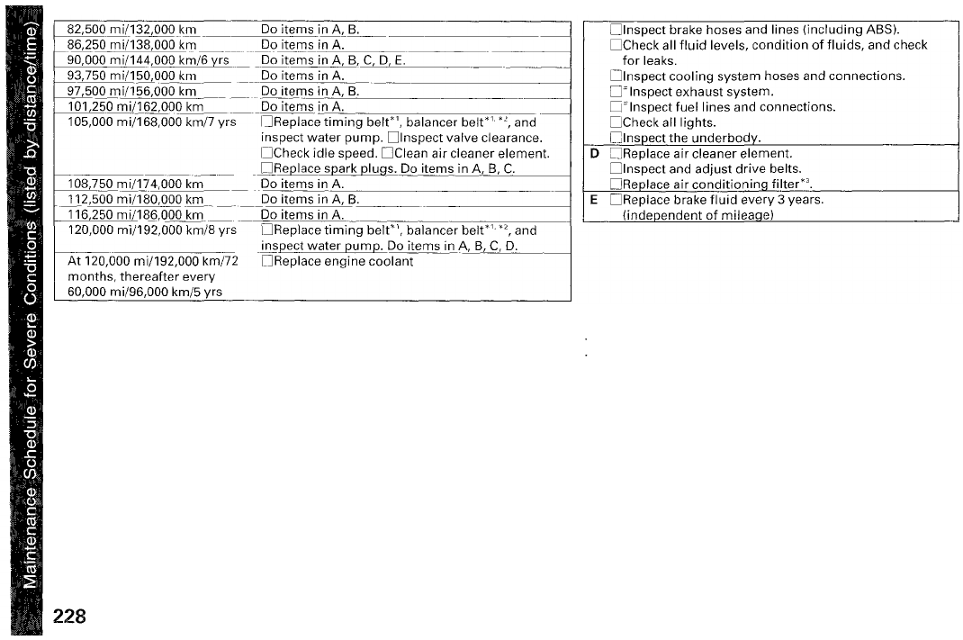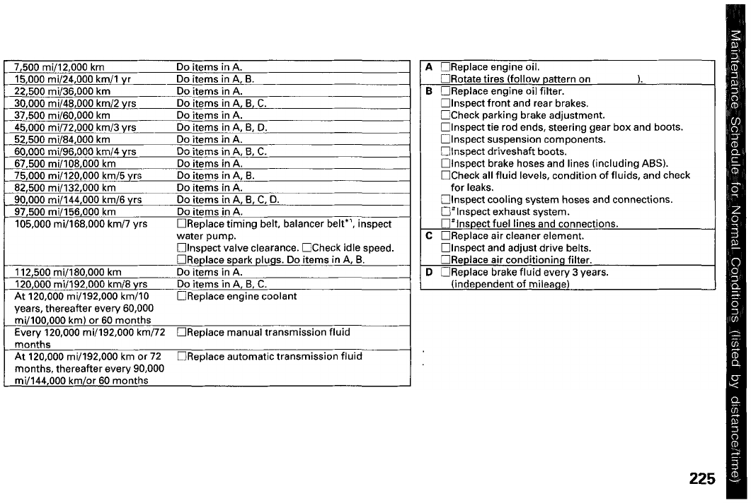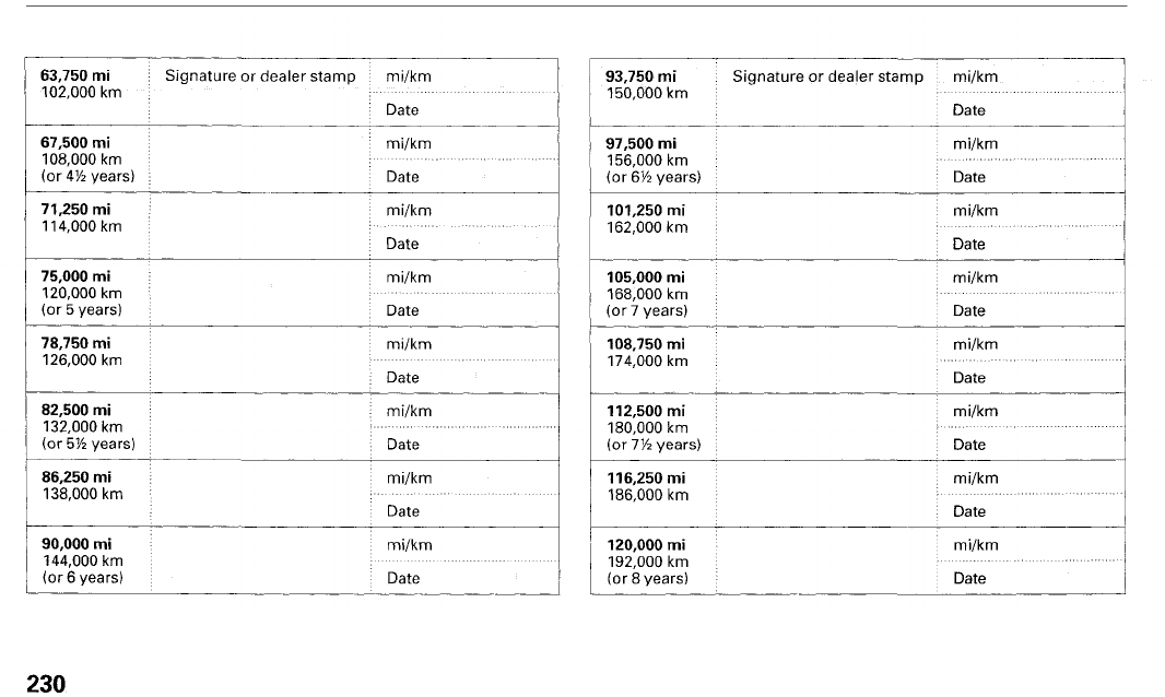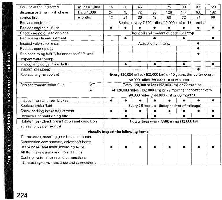 The Maintenance Schedule shows you when you need to take your vehicle to the dealer.