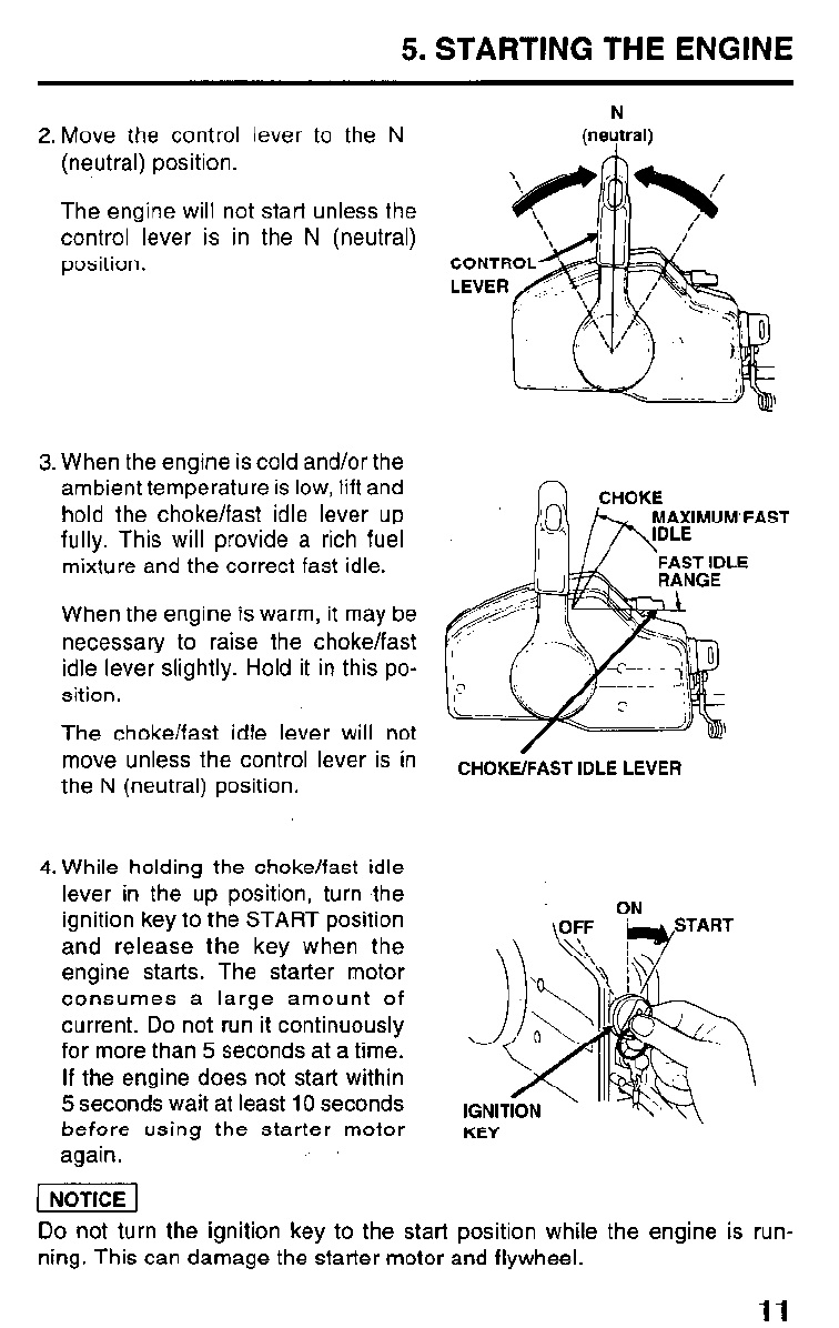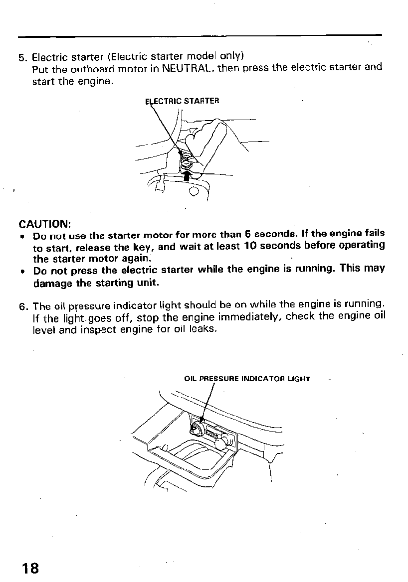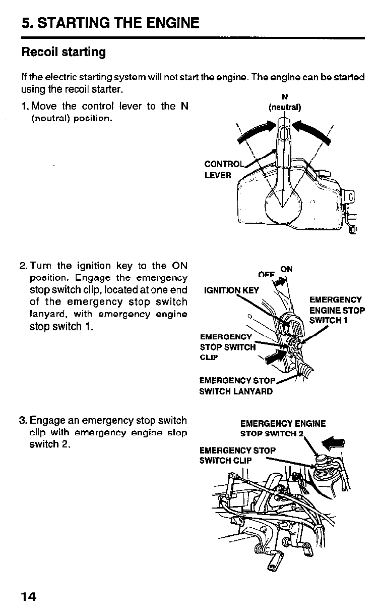 2. Press the electric starter button and start the engine.