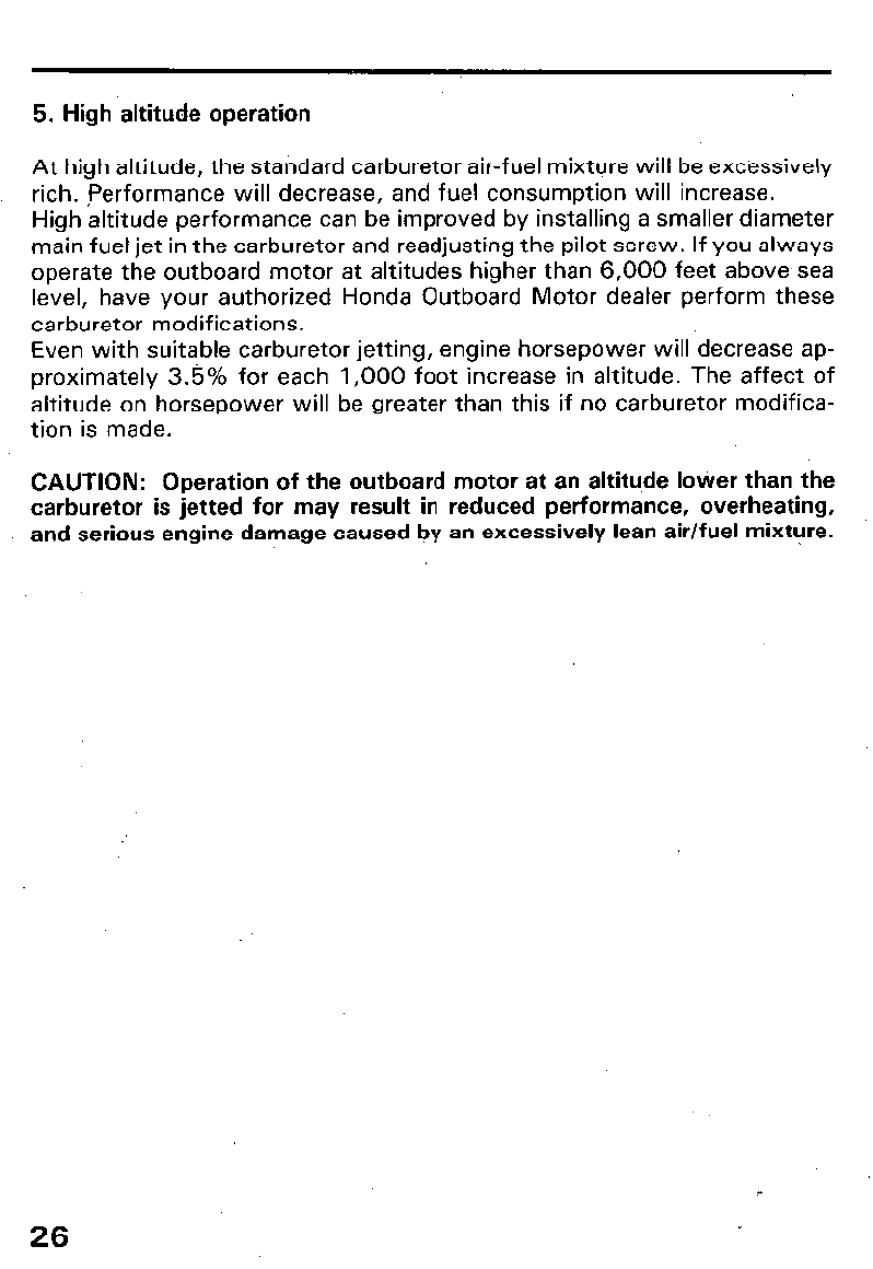 High altitude operation ....................................................... 26