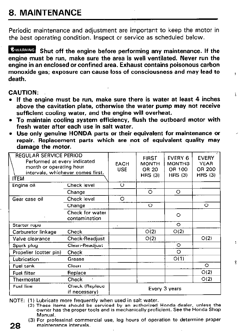 Motor, consult an authorized Honda Outboard Motor dealer.