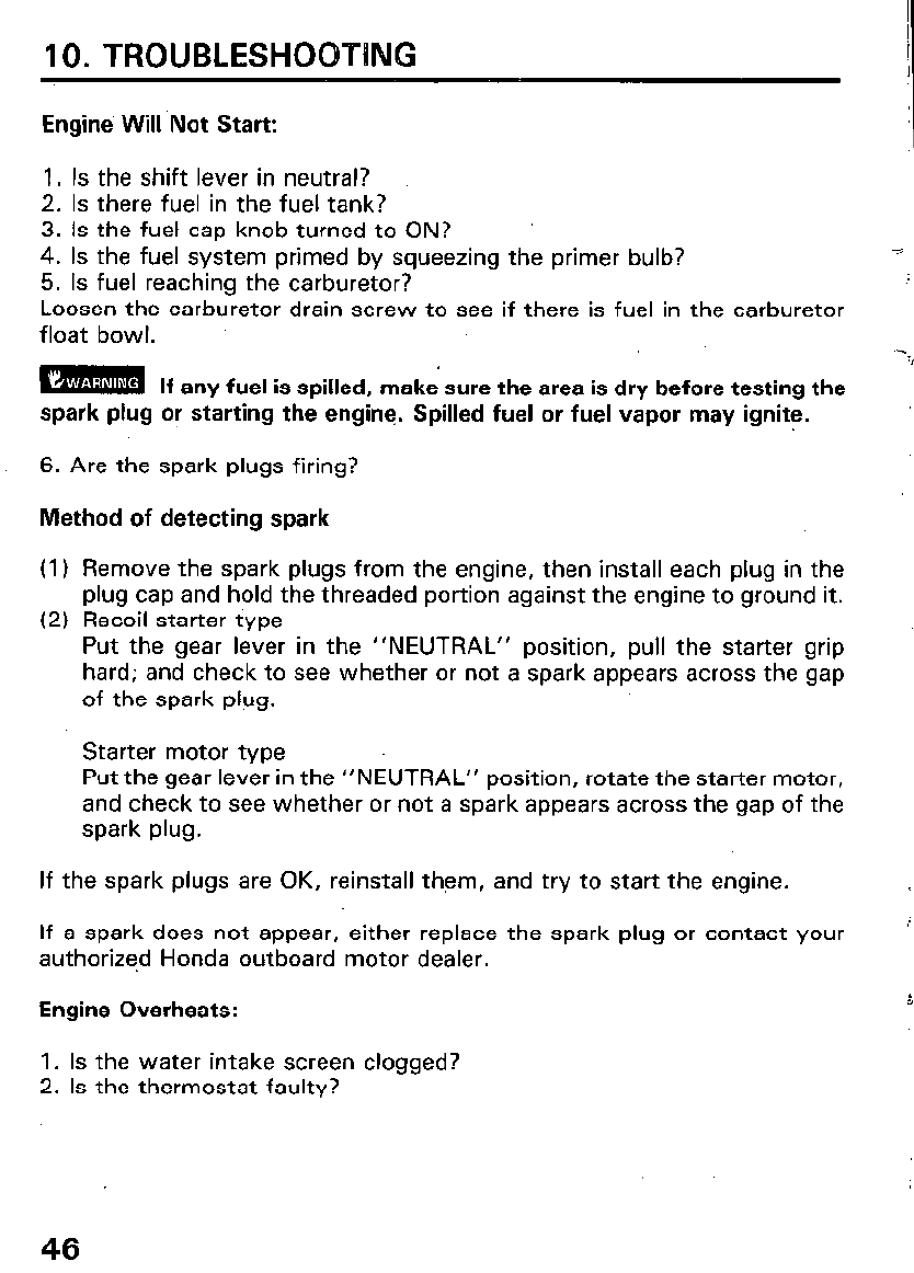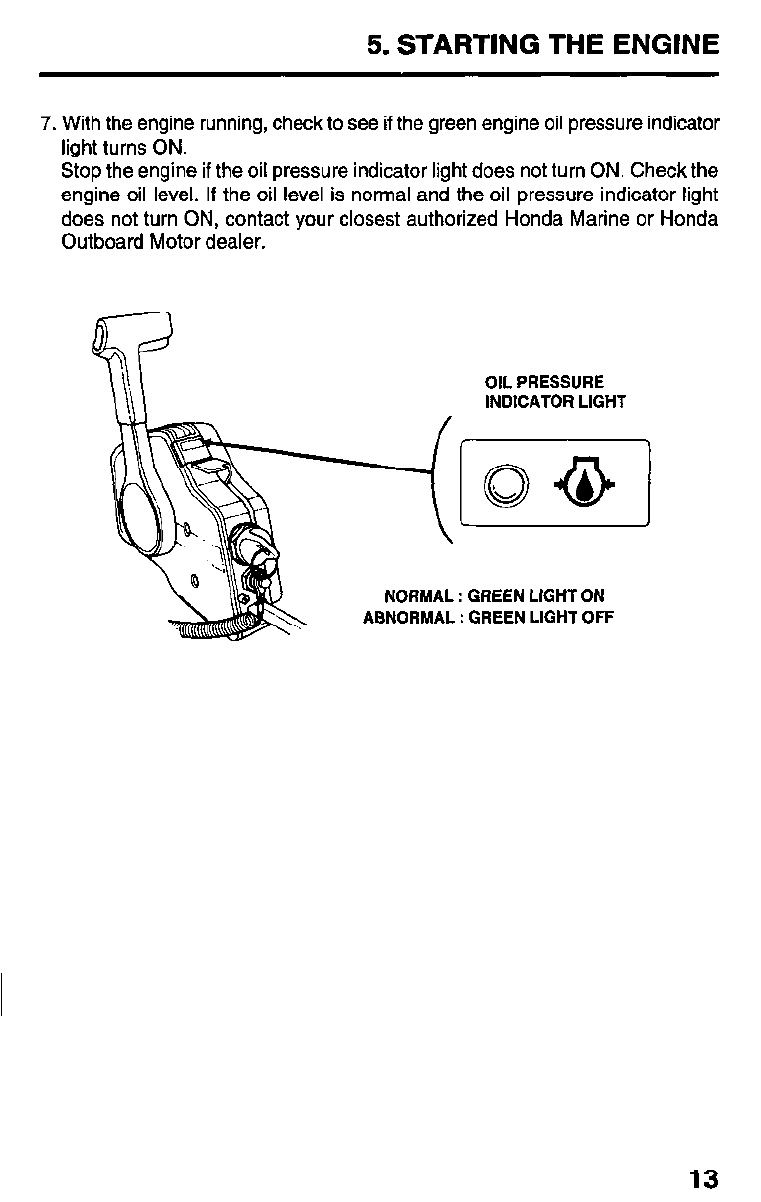 does not turn ON, contact your closest authorized Honda Marine or Honda