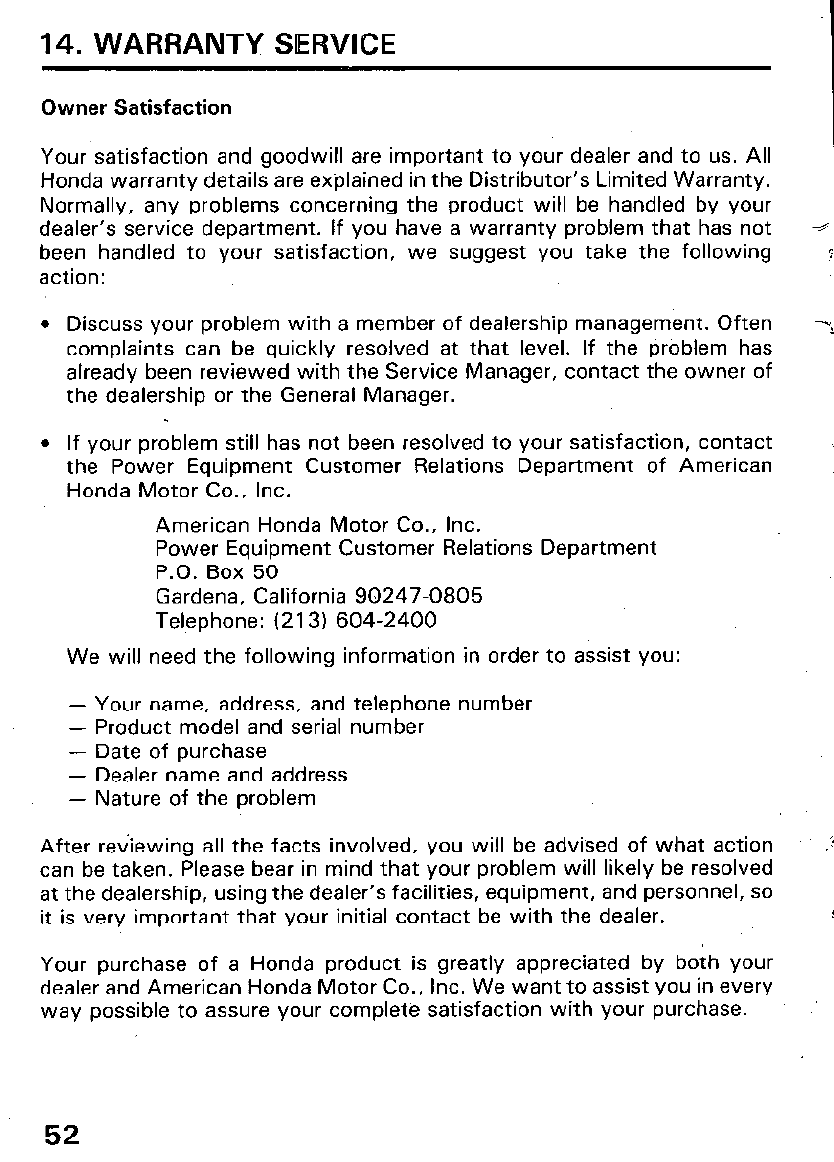 14. WARRANTY SERVICE ........................................................... 52