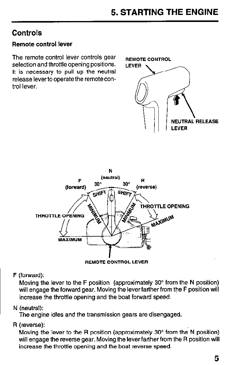 Moving the control lever farther from 30” will increase throttle opening and boat